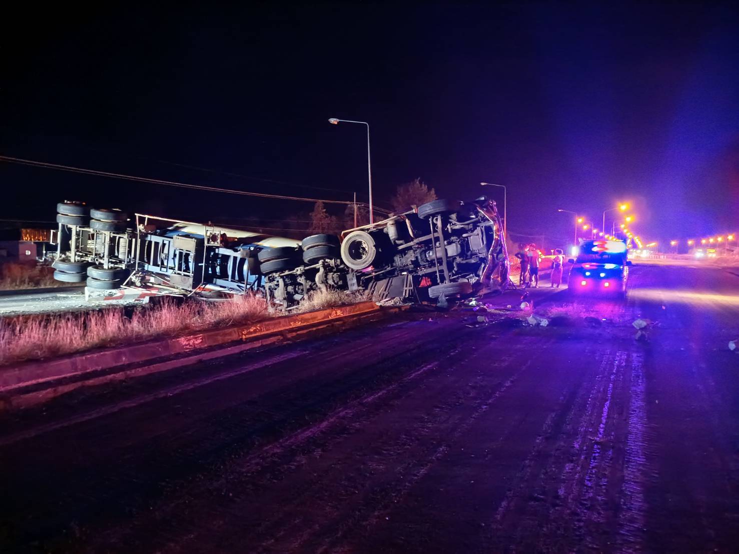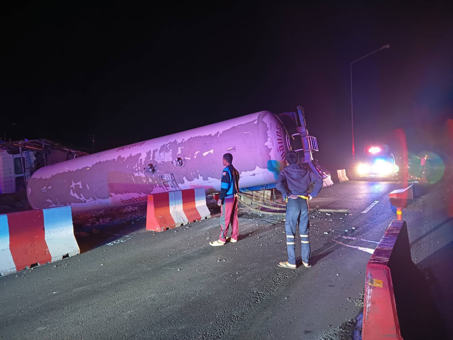 วันที่ 22 ธันวาคม 2568 เวลา 03.15 น. รับแจ้งจาก ตำรวจทางหลวง มีอุบัติเหตุ คนขับหลับใน รถบรรทุกก๊าซเสียหลักพลิกตะแคง กีดขวาง 1 ช่องทาง ถนนทางหลวงหมายเลข 24 ฝั่งขาออก ช่วงหลัก กม. 202 ในพื้นที่ ต.ตาเบา อ.ปราสาท จ.สุรินทร์ ไม่มีผู้บาดเจ็บหรือเสียชีวิต