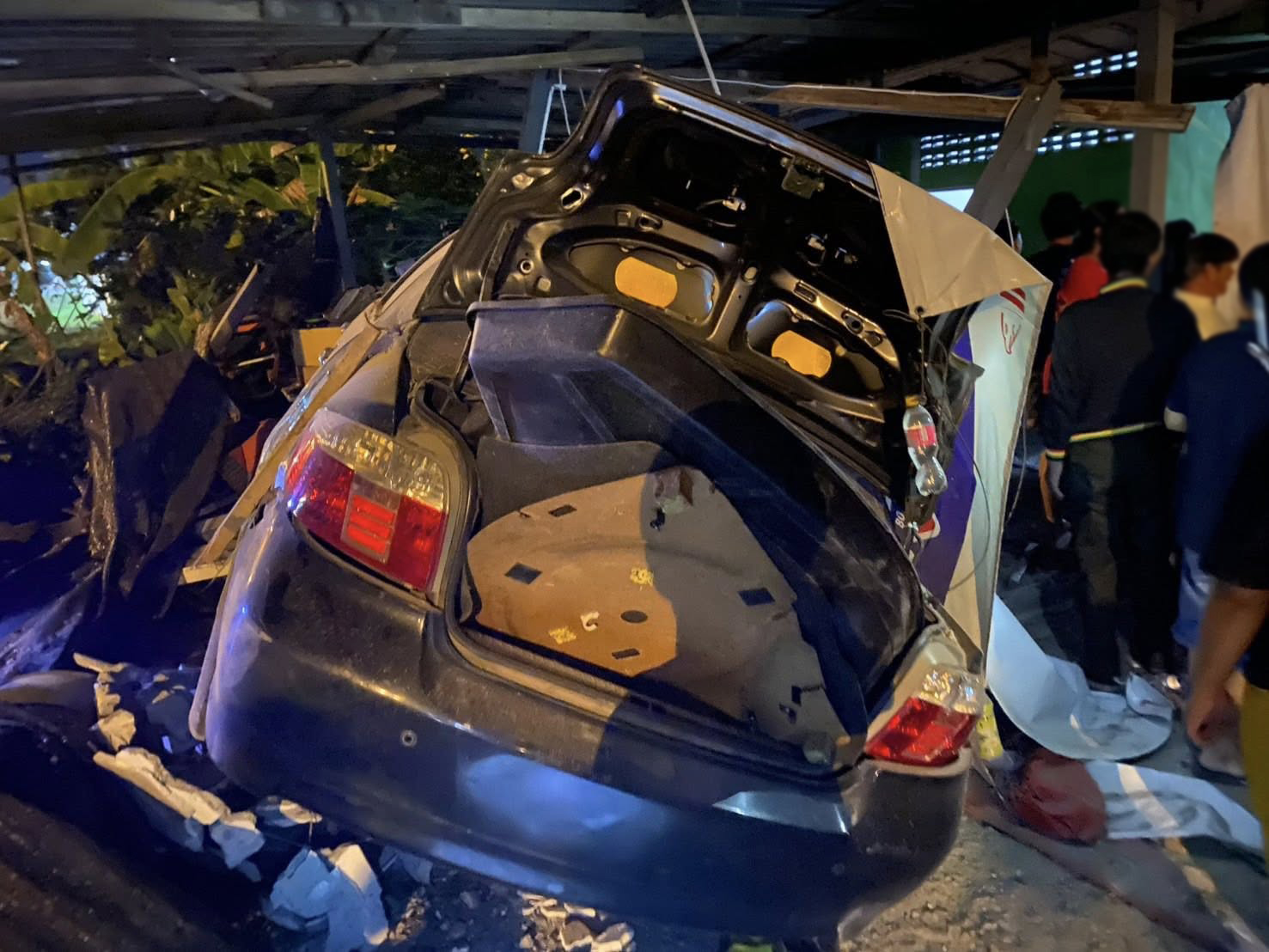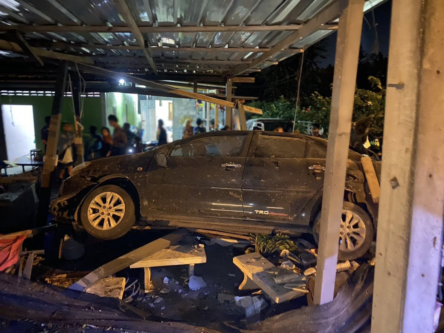 รถเก๋งเสียหลักพุ่งเข้าบ้านเรือนประชาชน ริมถนนหมู่บ้านแถวปากช่อง บาดเจ็บเพียงเล็กน้อย จ.นครราชสีมา