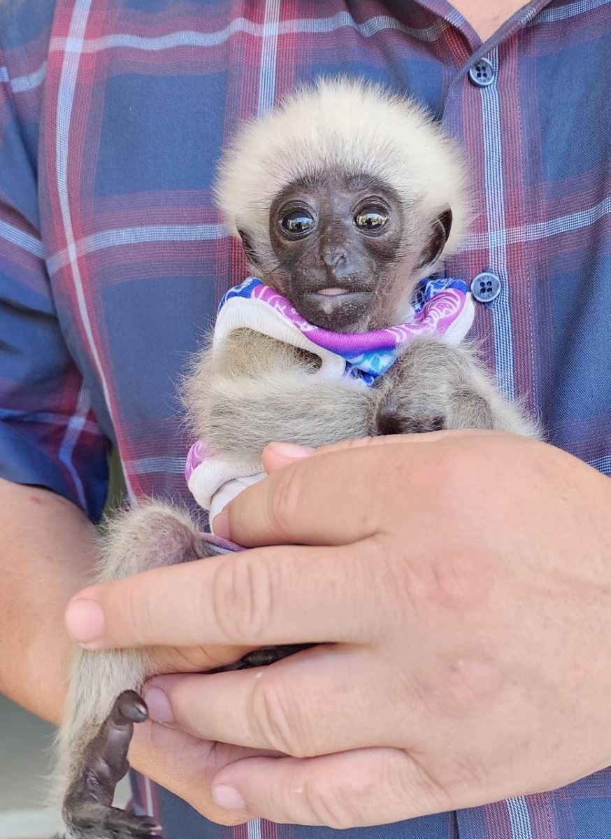 จากการตรวจสอบเบื้องต้น เจ้าหน้าที่พบว่าเป็น ลูกชะนี จึงได้ดำเนินการนำมาอนุบาลและดูแลตามหลักวิชาการ เพื่อประเมินสุขภาพและเตรียมความพร้อมสำหรับการฟื้นฟูต่อไปหากประชาชนพบเห็นสัตว์ป่าบาดเจ็บ/พลัดหลง โปรดแจ้ง สายด่วนพิทักษ์ป่า1362 ได้ตลอด 24 ชั่วโมง