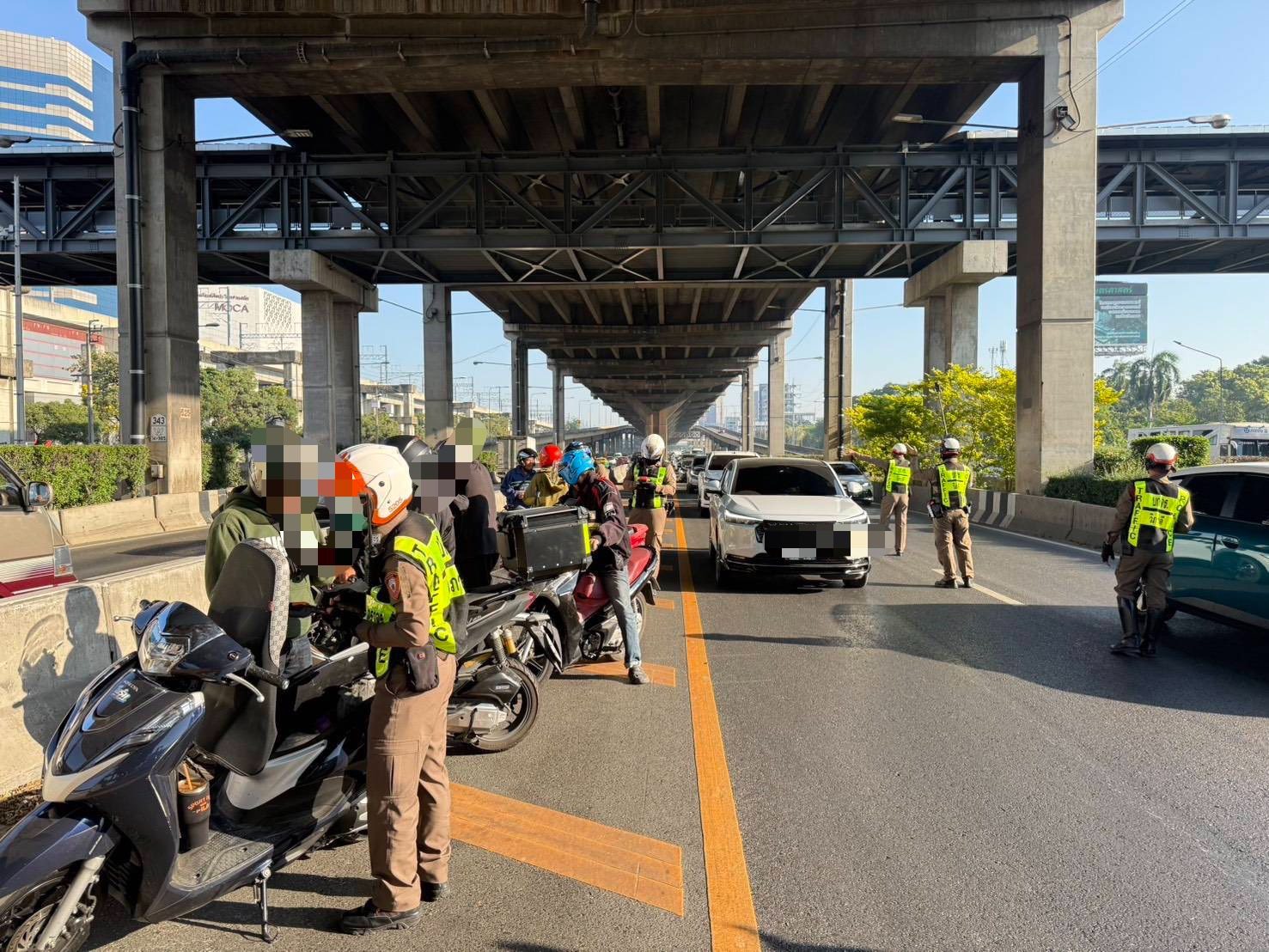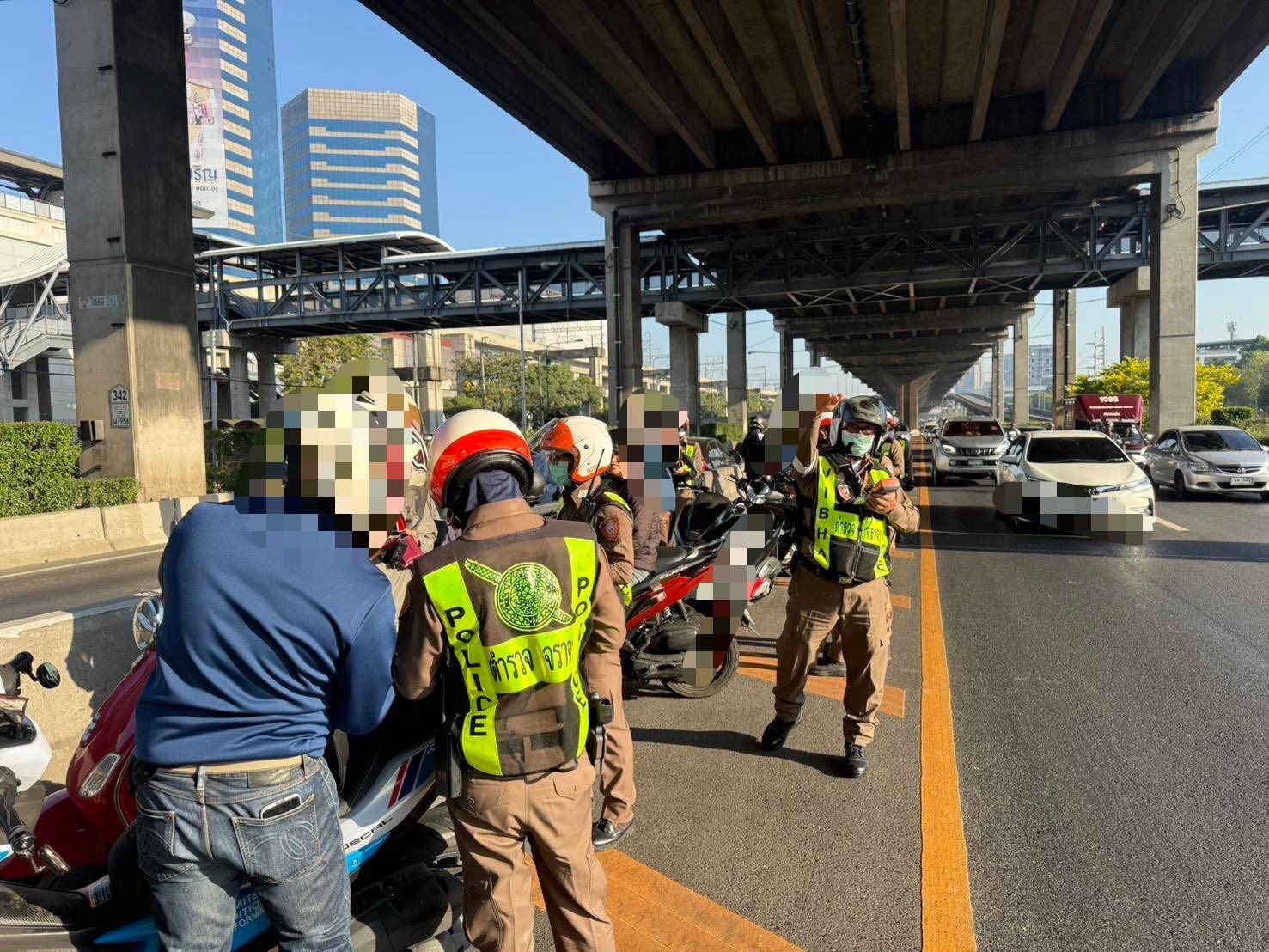 22 ธ.ค.68 เจ้าหน้าที่ตำรวจจราจร สน.วิภาวดี เดินหน้ากวดขันวินัยจราจรอย่างเข้มงวด โดย พ.ต.ท.ดามพวร ทองอิ่ม รอง ผกก.งานศูนย์ควบคุมจราจรวิภาวดีรังสิต/ทางพิเศษ กก.2 บก.จร. พร้อมด้วย พ.ต.ท.ภุชงค์ เม้าทุ่ง สว.จร.นำกำลังเจ้าหน้าที่ตำรวจจราจร ออกกวดขันรถจักรยานยนต์ฝ่าฝืนใช้ ช่องทางหลัก บนถนนวิภาวดีรังสิต ในช่วงเช้าที่ผ่านมา พบผู้กระทำผิด จำนวน 53 ราย เจ้าหน้าที่ได้ดำเนินการออกใบสั่งตามกฎหมาย พร้อมประชาสัมพันธ์และตักเตือนผู้ขับขี่อย่างเคร่งครัด