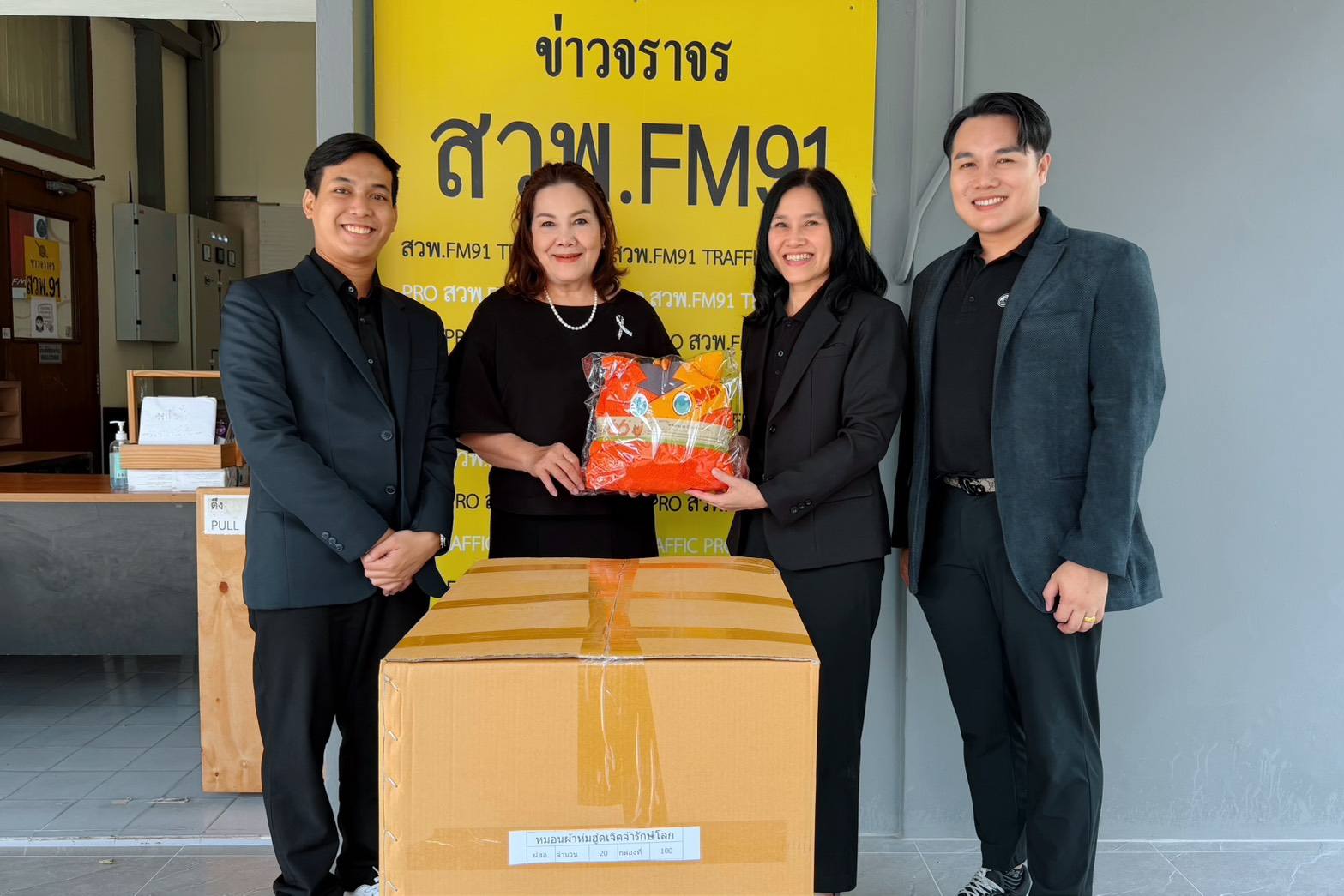 โดยมีคุณจิตต์ผ่องใส ศรีวังพล ผู้อำนวยการฝ่ายทรัพยากรบุคคลและจิตอาสาสัมพันธ์ สถานีวิทยุสวพ.FM91 รับมอบ