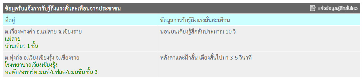 แผ่นดินไหว ขนาด 5.2 บริเวณพรมแดนประเทศลาว - ประเทศจีน สามารถรับรู้แรงสั่นสะเทือนได้ที่ จ.เชียงราย