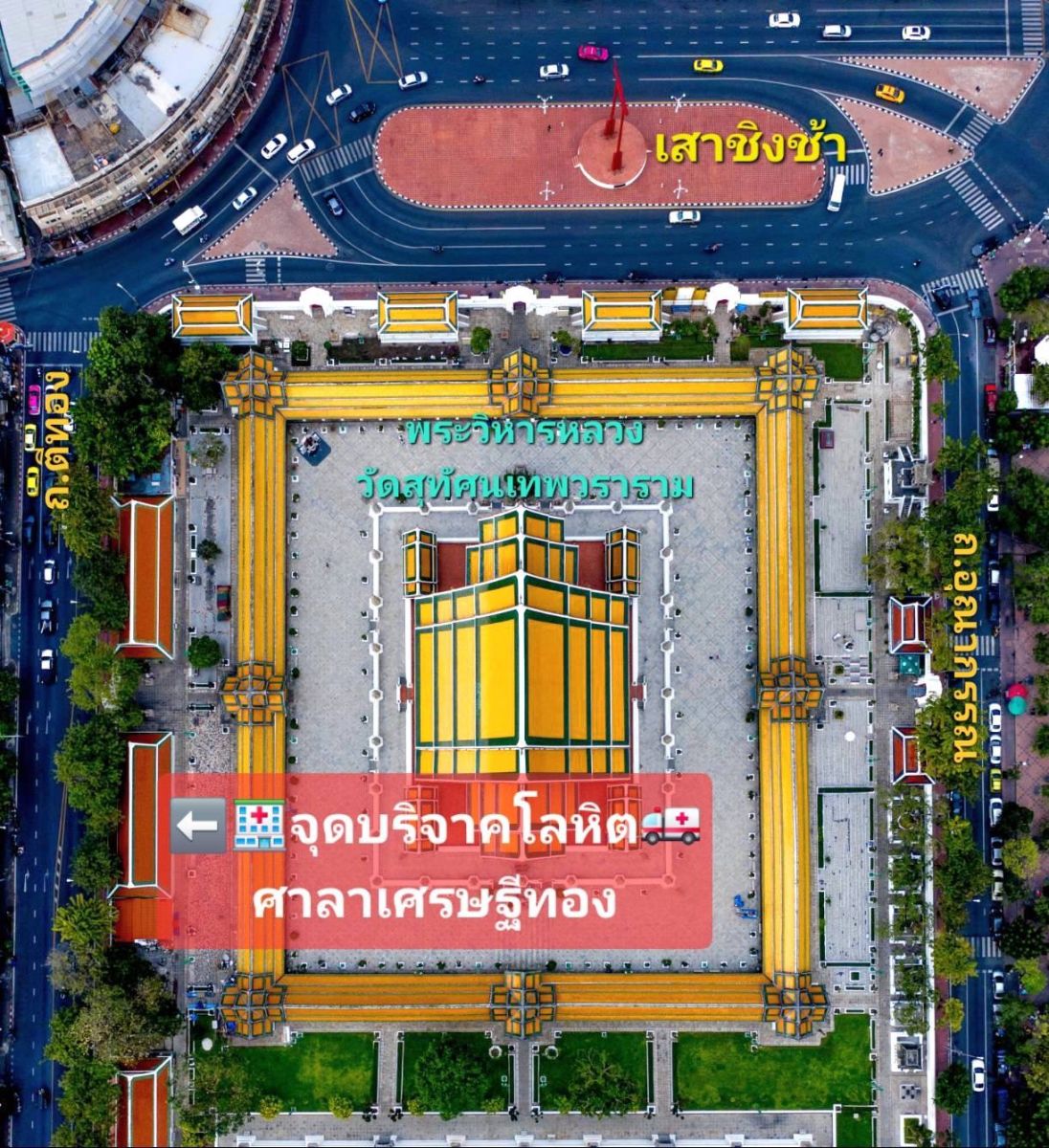 วัดสุทัศนเทพวราราม ราชวรมหาวิหาร ร่วมกับสภากาชาดไทย ขอเชิญชวนพระภิกษุสามเณร และพุทธศาสนิกชน อุบาสก อุบาสิกา ตลอดจนประชาชนผู้มีจิตศรัทธา ร่วมบำเพ็ญมหากุศลด้วยการ บริจาคโลหิต เพื่อช่วยเหลือผู้บาดเจ็บจากเหตุปะทะตามแนวชายแดนไทย–กัมพูชา และเพื่อเป็นคลังเลือดสำรองของประเทศ