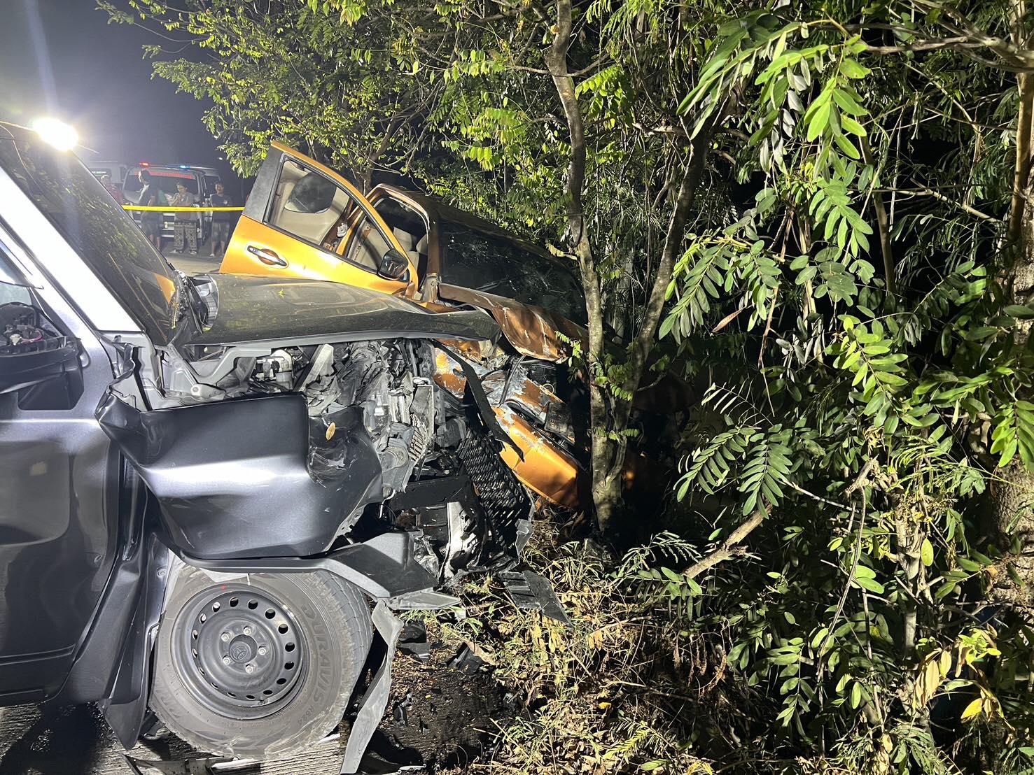 ที่เกิดเหตุเป็นลักษณะถนนคอนกรีต 2 เลนวิ่งสวนทาง พบรถกระบะ ยี่ห้อ นิสสัน รุ่น นาวาร่า สีน้ำตาล ทะเบียน กทม. สภาพหน้ารถพังเสียหายกระจกหน้าแตกร้าวตัวรถเกือบจะตกข้างทาง ส่วนคู่กรณีเป็นรถกระบะ ยี่ห้อ โตโยต้า สีเทา ทะเบียน กทม. สภาพหน้ารถพังเสียหายเช่นกัน โดยตัวรถอยู่ในลักษณะขวางถนน
