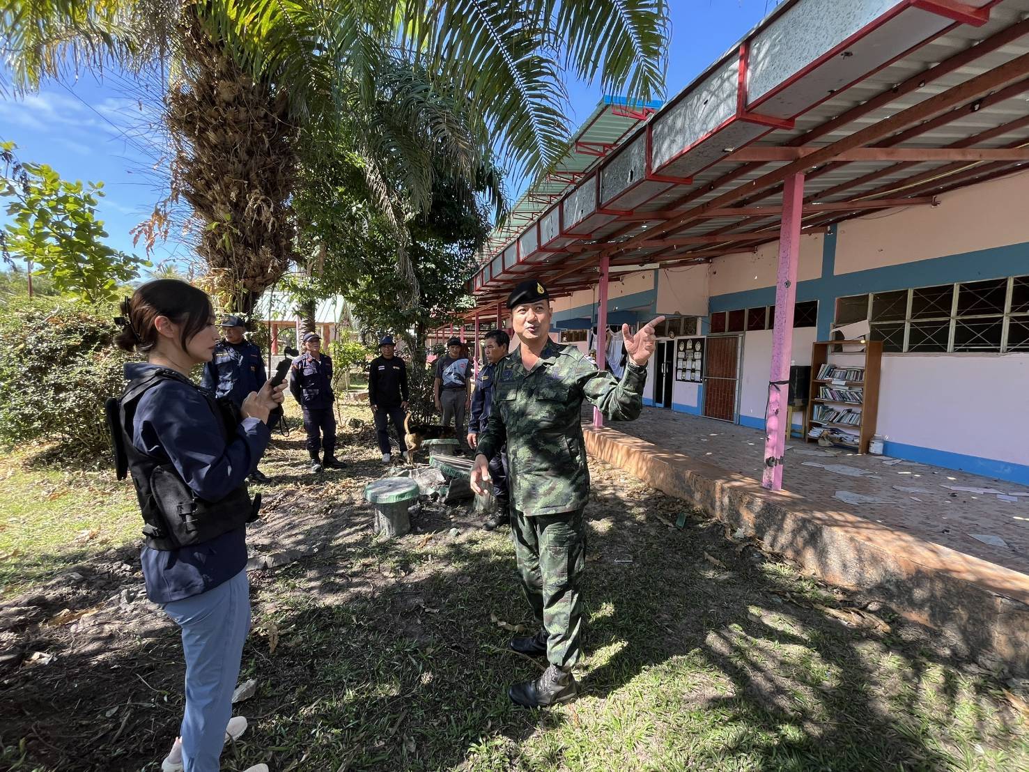 เมื่อวันที่ 24 ธ.ค. 2568 พ.อ.ภาสกร ปลอดในเมือง รองผู้บังคับการกรมพัฒนาที่ 2 ได้อำนวยความสะดวกแก่คณะผู้สื่อข่าวจากประเทศจีน China Media Group (CMG) ในการลงพื้นที่ติดตามข้อเท็จจริงและสำรวจความเสียหายในพื้นที่ชุมชน ตำบลเสาธงชัย อำเภอกันทรลักษ์ จังหวัดศรีสะเกษ โดยมีจุดตรวจสำคัญ ดังนี้