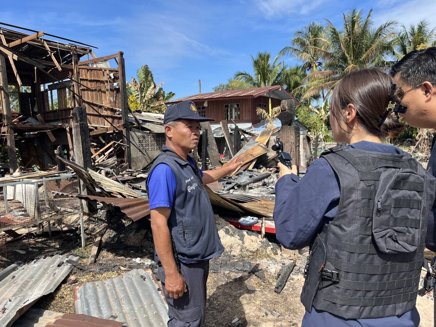 ในการลงพื้นที่ครั้งนี้ คณะผู้สื่อข่าวได้สัมภาษณ์และสอบถามข้อมูลจาก ชุดรักษาความปลอดภัยหมู่บ้าน (ชรบ.) และ ผู้นำชุมชน เพื่อรวบรวมข้อเท็จจริงเกี่ยวกับผลกระทบที่เกิดขึ้น โดยข้อมูลจากพื้นที่สะท้อนว่า การโจมตีด้วยกำลังทางทหารของฝ่ายกัมพูชาส่งผลต่อ พื้นที่พลเรือน ซึ่งเป็นชุมชนและบ้านเรือนประชาชนใกล้แนวชายแดนไทย–กัมพูชา มิใช่เป้าหมายทางทหาร ส่งผลให้เกิดความสูญเสียและความเดือดร้อนต่อประชาชนผู้บริสุทธิ์เป็นวงกว้าง