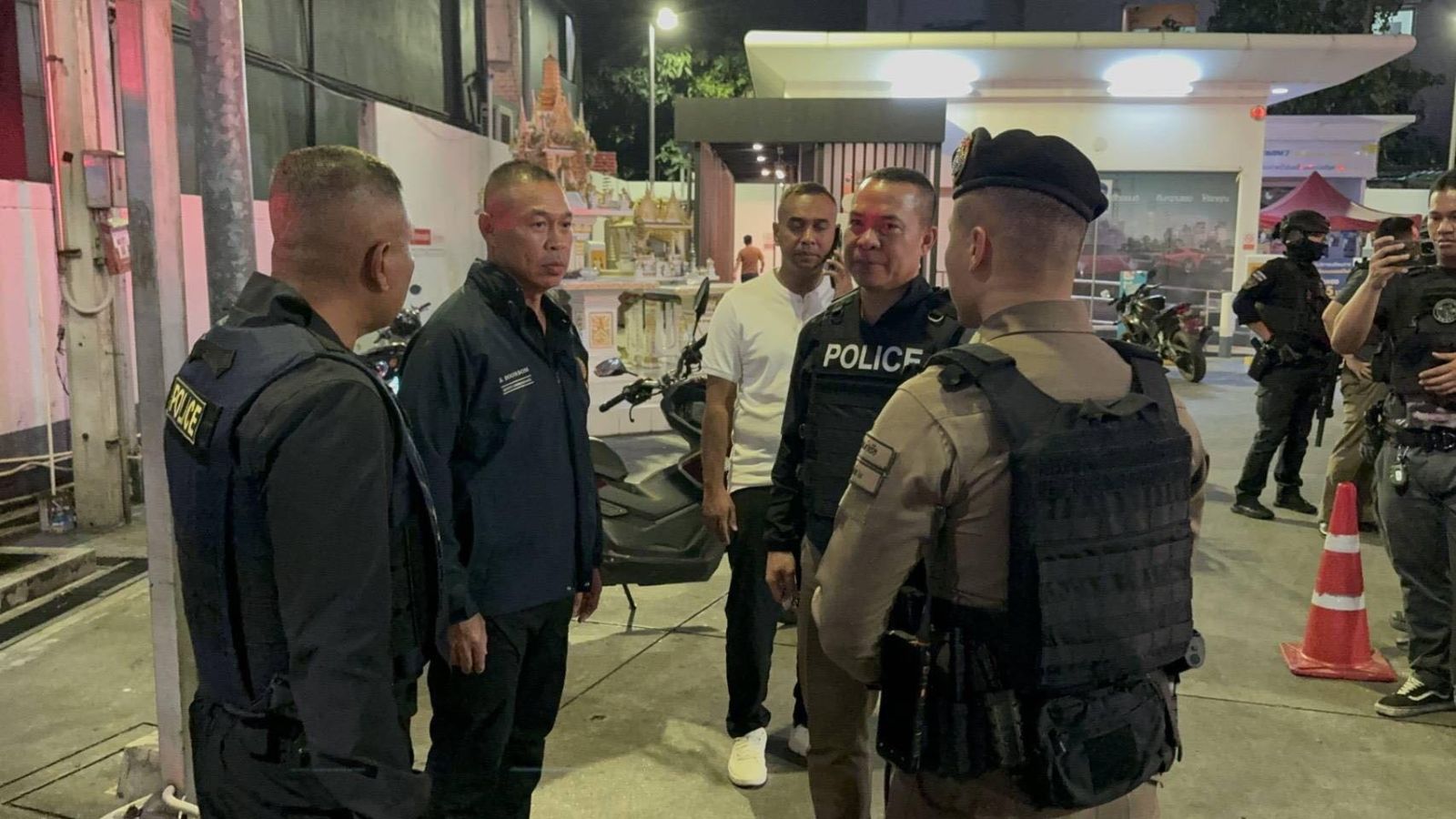 ซึ่งหลังเกิดเหตุพนักงานสอบสวน เจ้าหน้าที่กองพิสูจน์หลักฐานตำรวจ เข้าตรวจสอบที่เกิดเหตุ ซึ่งเป็นบริเวณร้านขายก๋วยเตี๋ยว ภายในชุมชน พร้อมอาสาสมัครกู้ภัยมูลนิธิร่วมกตัญญู เข้าช่วยเหลือผู้ได้รับบาดเจ็บ นำส่งโรงพยาบาล