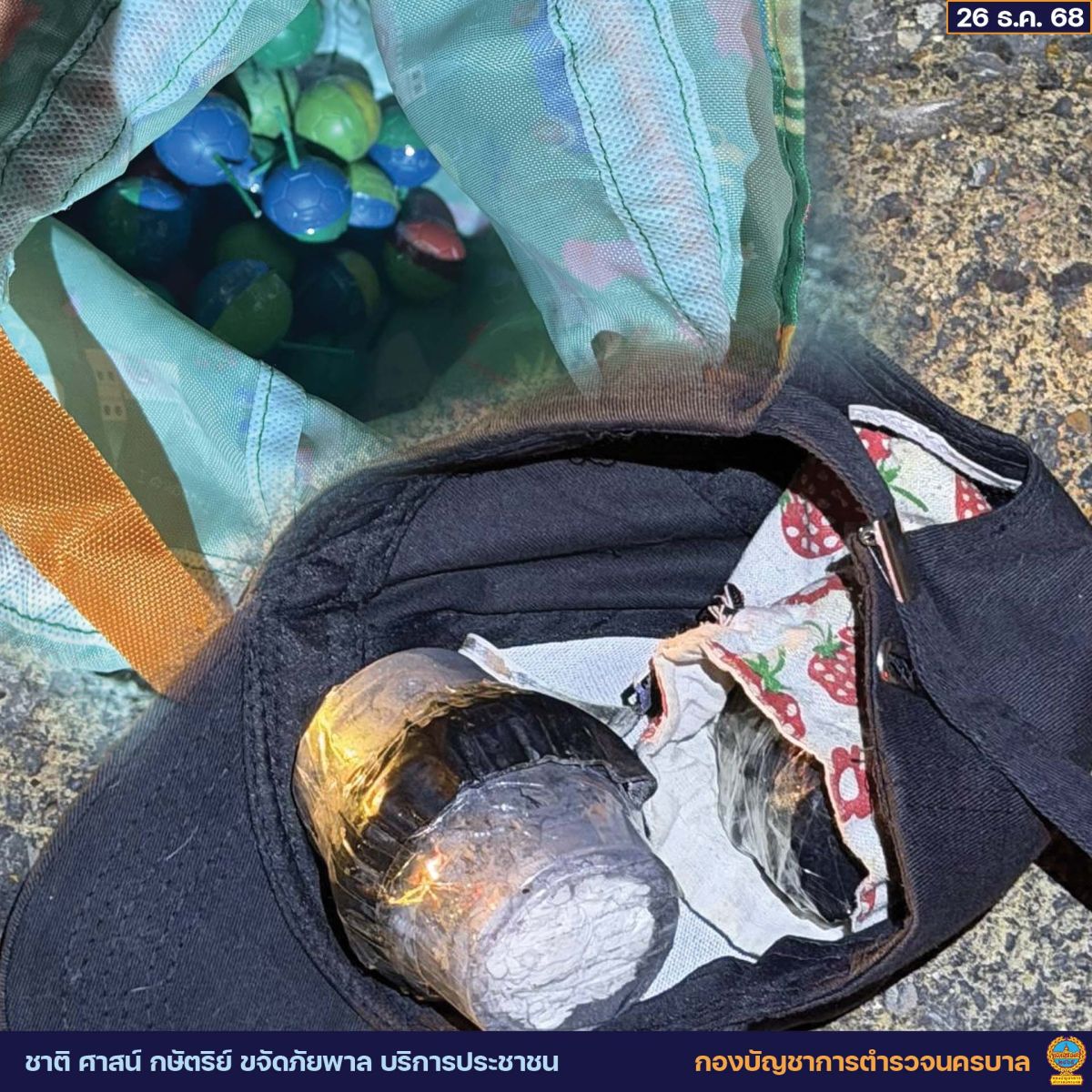 วันที่ 26 ธ.ค. 68 เวลาประมาณ 00:30 น. เพจ กองบัญชาการตำรวจนครบาล - บช.น. Metropolitan Police Bureau โพสต์ข้อความระบุ ขณะที่เจ้าหน้าที่ตำรวจชุดจับกุม งานสายตรวจ 2 กก.1 บก.จร.ได้ร่วมกันตั้งจุดตรวจวัดแอลกอฮอล์ ณ จุดที่เกิดเหตุ พบรถจักรยานยนต์ ขับขี่เข้ามาที่ด่าน โดยมีนางสาวเอ (นามสมมติ) เป็นผู้ขับขี่รถจักรยานยนต์คันดังกล่าว สะพายกระเป๋าผ้าสีน้ำเงินติดตัวจำนวน 1 ใบ และมีนายแพน (นามสมมติ) ชาวกัมพูชา ไม่มีเอกสารประจำตัวแสดง เป็นผู้นั่งซ้อนท้าย เจ้าหน้าที่ตำรวจึงได้เรียกให้รถคันดังกล่าวนั้นหยุดรถ จากนั้นได้ทำการแสดงตัวเป็นเจ้าหน้าที่ตำรวจ เมื่อเห็นเจ้าหน้าที่ตำรวจผู้ต้องหาทั้งสองได้แสดงท่าทางมีพิรุธ จึงขอทำการตรวจค้น ผลการตรวจค้นรถพบ กระเป๋าผ้าแขวนอยู่ที่หน้ารถคันดังกล่าว