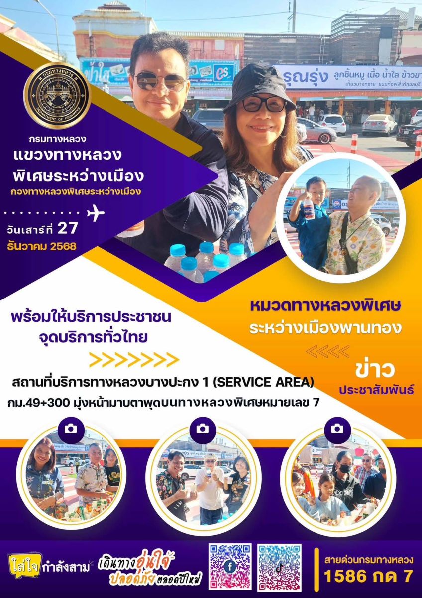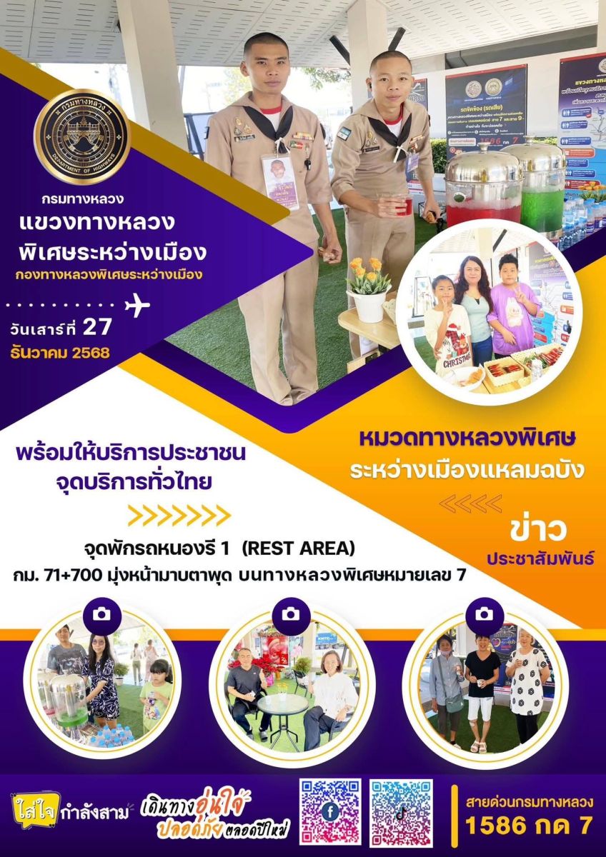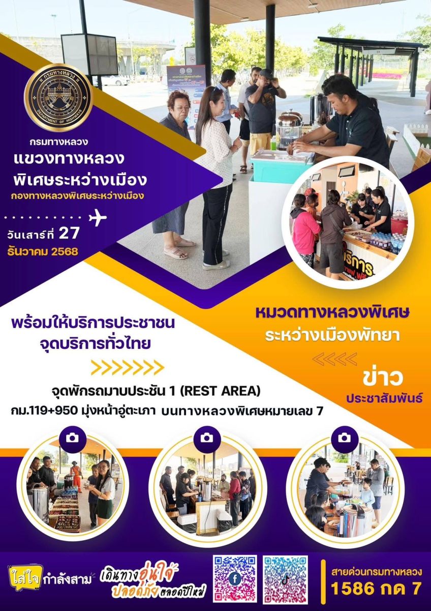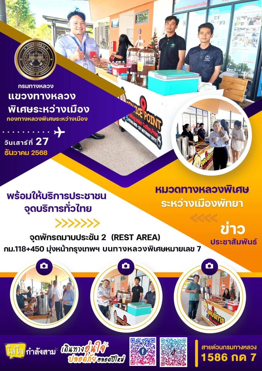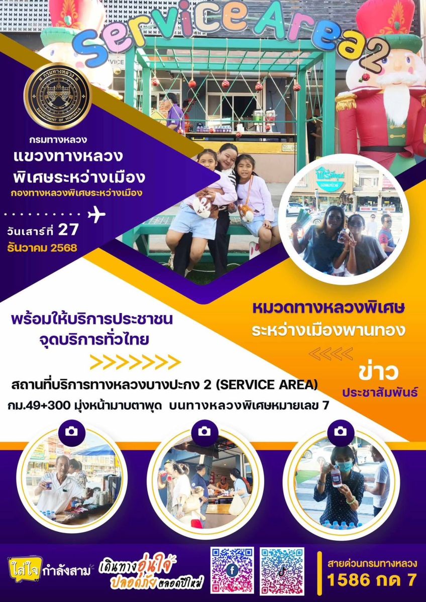 แขวงทางหลวงพิเศษระหว่างเมือง พร้อมให้บริการประชาชน บนทางหลวงพิเศษหมายเลข 7 และ 9 ณ จุดบริการทั่วไทย และจุดบริการห้องน้ำสะอาด โดยให้บริการน้ำดื่ม กาแฟ โอวัลติน ผ้าเย็น และขนมขบเคี้ยวต่างๆ สำหรับประชาชนที่เดินทางกลับภูมิลำเนา และเดินทางท่องเที่ยวในวันหยุดยาวช่วงเทศกาลปีใหม่ 2569 ได้แวะใช้บริการ ผ่อนคลายอิริยาบท ลดความเมื่อยล้าจากการเดินทาง