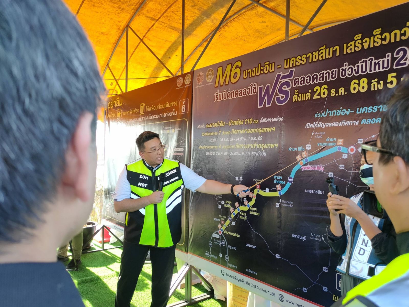 วันนี้ (29 ธ.ค.68) นายปิยพงษ์ จิวัฒนกุลไพศาล อธิบดีกรมทางหลวง กล่าวว่า จากการเปิดใช้ทางหลวงพิเศษระหว่างเมือง (มอเตอร์เวย์) หมายเลข 6 (M6) ช่วงบางปะอิน-นครราชสีมา พบว่า เมื่อวันที่ 28 ธ.ค.2569 มีปริมาณจราจรบน M6 ดังนี้ ช่วงบางปะอิน-หินกอง มีปริมาณจราจรขาออก 41,257 คัน ลดลงจากเมื่อวาน 31% ช่วยแบ่งเบาปริมาณจราจรบน ทล.1 (ถนนพหลโยธิน) ถึง 37%, ช่วงสระบุรี-ปากช่อง มีปริมาณจราจรขาออก 42,319 คัน ลดลงจากเมื่อวาน 29% ช่วยแบ่งเบาปริมาณจราจรบน ทล.2 (ถนนมิตรภาพ) ถึง 40% และช่วงปากช่อง-นครราชสีมา มีปริมาณจราจรขาออก 40,530 คัน ลดลงจากเมื่อวาน 28% ช่วยแบ่งเบาปริมาณจราจรบน ทล.2 ถึง 39% ส่วนขาเข้ามีปริมาณจราจร 10,699 คัน ลดลงจากเมื่อวาน 1% ช่วยแบ่งเบาปริมาณจราจรบน ทล.2 ถึง 33%