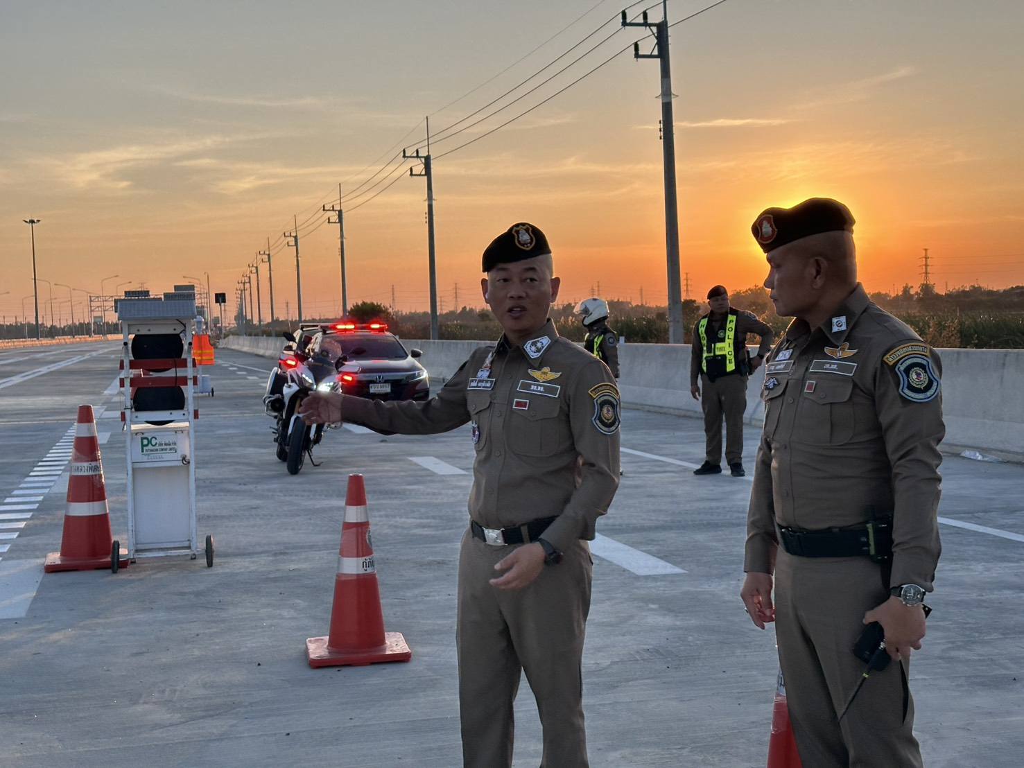 ผบก.ทล. เน้นบริหารจัดการจุดเบี่ยงและจุดคอขวด โดยเฉพาะบริเวณ กม.10 M6 ซึ่งอาจเกิดการชะลอตัวและอุบัติเหตุจากการเปลี่ยนเลนกะทันหัน สั่งการให้ติดตั้งเครื่องกั้นและสัญญาณไฟให้ชัดเจน พร้อมกำชับเจ้าหน้าที่อำนวยความสะดวกผู้ใช้ทางที่เข้าผิดช่องทาง ด้วยความสุภาพและรวดเร็ว