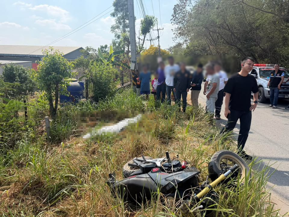 (1 ม.ต.69) ผู้สื่อข่าวรายงาน จากกรณีพบรถจักรยานยนต์ล้มคว่ำ และมีผู้เสียชีวิต เป็นชายไทย อายุ 43 ปี ภายในพงหญ้าข้างทาง บริเวณซอยผู้ใหญ่ชา หมู่ 5 ต.ตะเคียนเตี้ย อ.บางละมุง จ.ชลบุรี เมื่อช่วงเช้าที่ผ่านมา หลังจาก จนท.ตรวจสอบภายในตัวผู้ตายพบ ยาบ้า 200 เม็ด และเครื่องกระสุนปืนจำนวนมาก