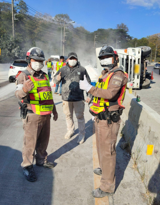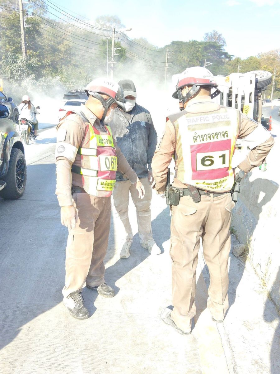 สภ. เมืองหนองบัวลำภู อำนวยความสะดวกจราจรรถบรรทุกพลิกคว่ำ