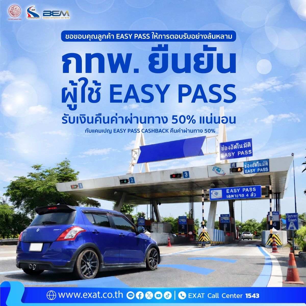 วันนี้ แคมเปญพิเศษต้อนรับปีใหม่ EASY PASS CASHBACK คืนค่าผ่านทาง 50% ของ กทพ.ได้การตอบรับจากผู้ใช้ Easy Pass อย่างล้นหลาม