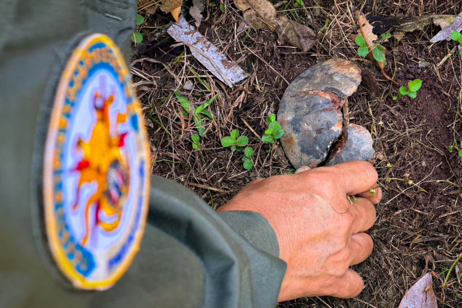 จากนั้นเจ้าหน้าที่เข้าตรวจสอบจุดที่ 2 ที่ห่างออกไปประมาณ 500 เมตร พบหลุมระเบิดอยู่ข้างต้นทุเรียน จึงใช้รถแบคโฮเข้าทำการขุดลึกกว่า 3 เมตร พบสะเก็ดระเบิดกว่า 10 ชิ้น โดยมี 3 ชิ้นสามารถประกอบเข้าด้วยกัน ก่อนจะใช้อุปกรณ์วัดเส้นผ่านศูนย์กลาง และพบว่าเป็นกระสุนปืนใหญ่ขนาด 122 มิลลิเมตร อย่างไรก็ตามการดำเนินการในครั้งนี้เพื่อเป็นการสร้างความปลอดภัยและมั่นใจให้กับประชาชนในการใช้พื้นที่ว่ามีความปลอดภัย