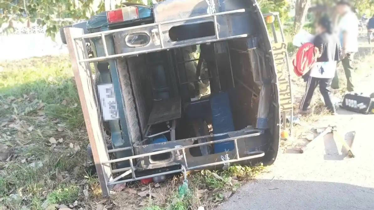 ที่เกิดเหตุ พบรถกระบะ โตโยต้า สีเขียว ป้ายทะเบียน 3650 พะเยา ซึ่งใช้เป็นรถรับส่งนักเรียน อยู่ในสภาพเสียหลักพุ่งออกนอกเส้นทาง พลิกตะแคงข้างและไถลชนอัดติดกับต้นไม้ข้างทาง สภาพด้านหน้ารถพังเสียหายยับเยิน ผู้ขับขี่ติดอยู่ภายในห้องโดยสาร เจ้าหน้าที่กู้ภัยต้องใช้อุปกรณ์งัดซากรถ เพื่อนำตัวผู้บาดเจ็บออกมาได้อย่างปลอดภัย จากการตรวจสอบเบื้องต้นพบว่า ผู้ขับขี่ได้รับบาดเจ็บเพียงเล็กน้อย และได้รับการปฐมพยาบาลจากเจ้าหน้าที่กู้ภัย ก่อนถูกนำส่งโรงพยาบาลเพื่อตรวจร่างกายอย่างละเอียดต่อไป