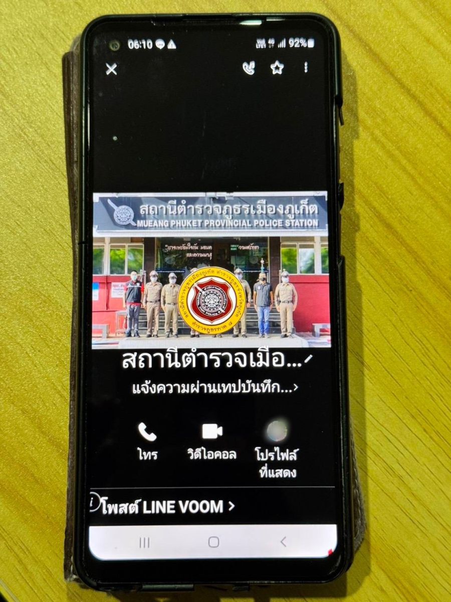 สอบถามผู้เสียหายภายหลังให้การว่า ได้รับโทรศัพท์จากบุคคลอ้างเป็นเจ้าหน้าที่ธนาคาร แจ้งว่าบัญชีของตนกำลังจะถูกอายัด ก่อนโอนสายไปยังบุคคลที่อ้างว่าเป็นเจ้าหน้าที่ตำรวจ สภ.เมืองภูเก็ต และให้โอนเงินไปยังปปง. เพื่อตรวจสอบ โดยคนร้ายใช้วิธีวิดีโอคอลสั่งการให้ทำตามขั้นตอนต่างๆ สุดท้ายผู้เสียหายหลงเชื่อและโอนเงินไปยังบัญชีคนร้ายรวม 5 ครั้ง เป็นเงินทั้งสิ้น 1,199,998 บาท