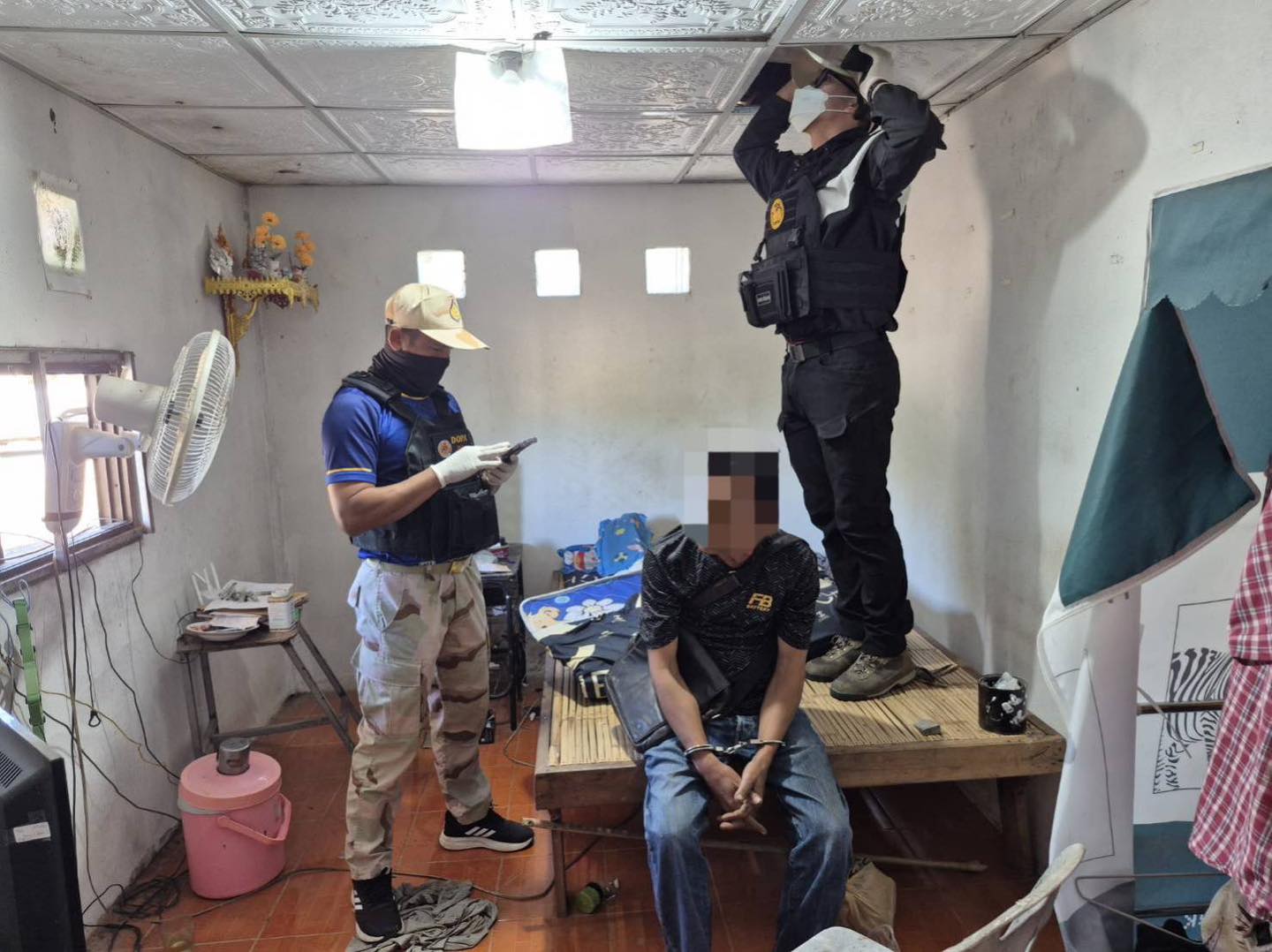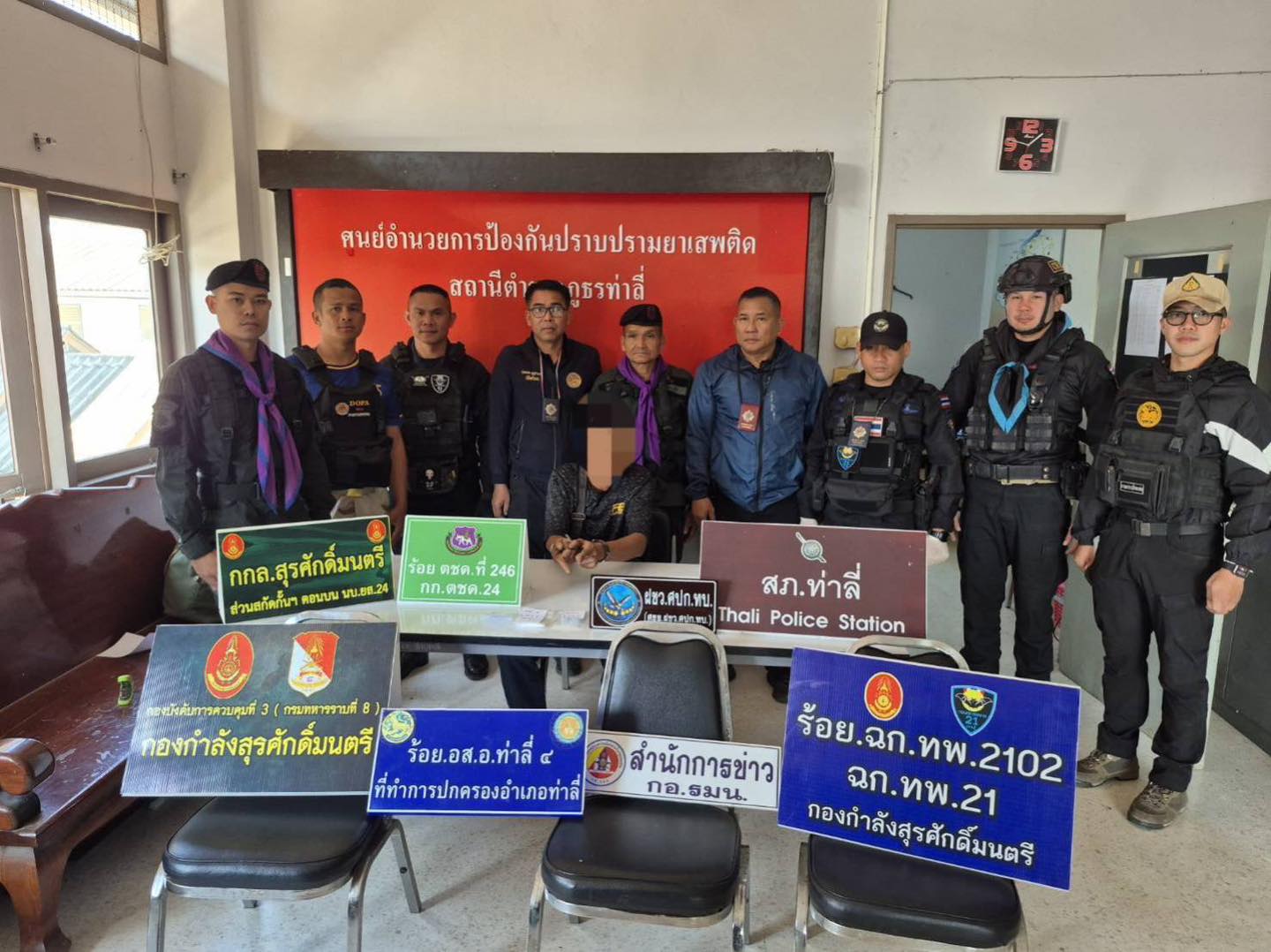 ร้อย ฉก.ทพ.2102 ฉก.ทพ 21 จัดกำลังพลบูรณาการ ร่วมกับฝ่ายปกครอง อ.ท่าลี่,สภ.ท่าลี่ ปฏิบัติการตามแผนกวาดล้างยาเสพติด ผนึกกำลัง ชุมชนปลอดยาเสพติด เข้าตรวจค้นกลุ่มบุคคลเป้าหมายที่มีพฤติกรรม เกี่ยวข้องกับยาเสพติด พื้นที่ บ้านห้วยผุก ตำบลน้ำแคม อำเภอท่าลี่ จังหวัดเลย สามารถจับกุมผู้ต้องหา 1 ราย พร้อมของกลางยาไอซ์ จำนวน 3 ถุง น้ำหนัก 23.7 กรัม และธนบัตรเงินสดจำนวนหนึ่ง เจ้าหน้าที่จึงได้ควบคุมตัวผู้กระทำผิด พร้อมของกลาง มาที่ สภ.ท่าลี่ เพื่อตรวจนับอย่างละเอียดและดำเนินการตามกฎหมายต่อไป