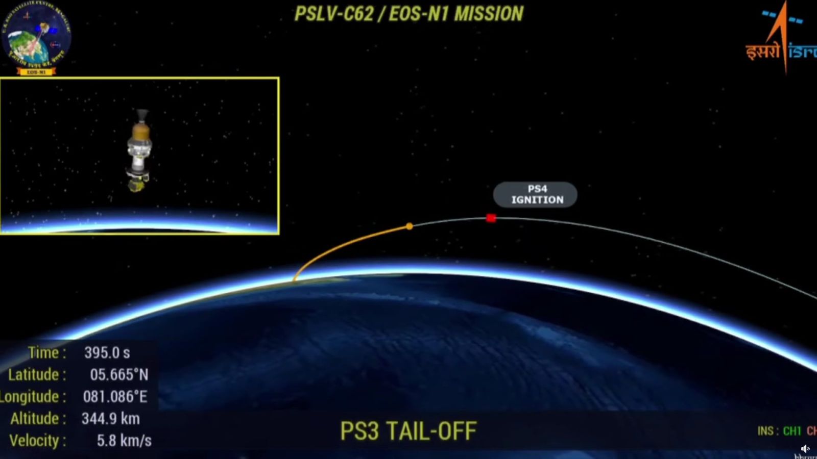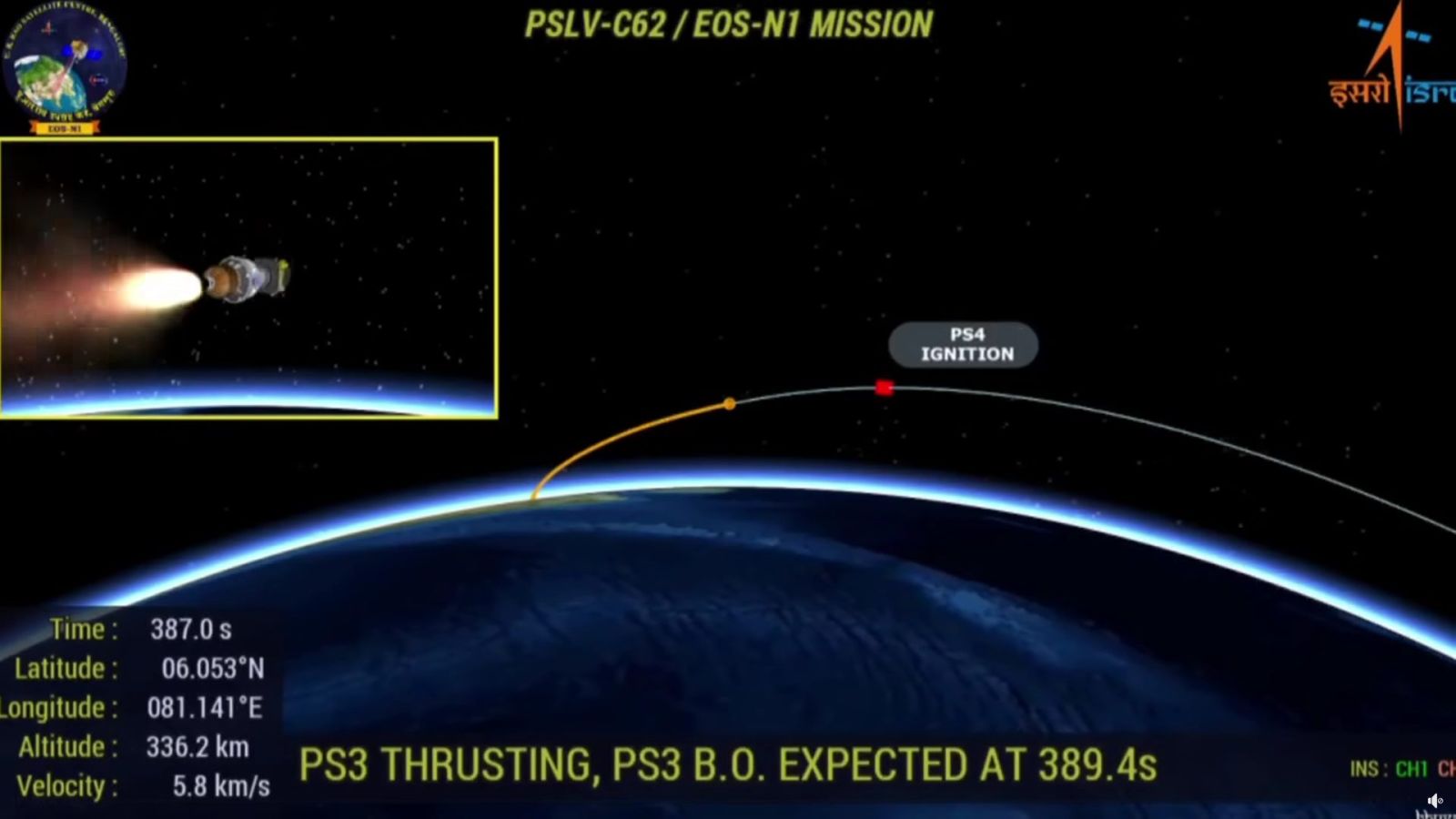 จรวด PSLV-C62 ของอินเดีย เกิดทำงานผิดพลาด ในสเตจที่ 3/4 ทำให้ดาวเทียม 15 ดวงไปต่อไม่ได้