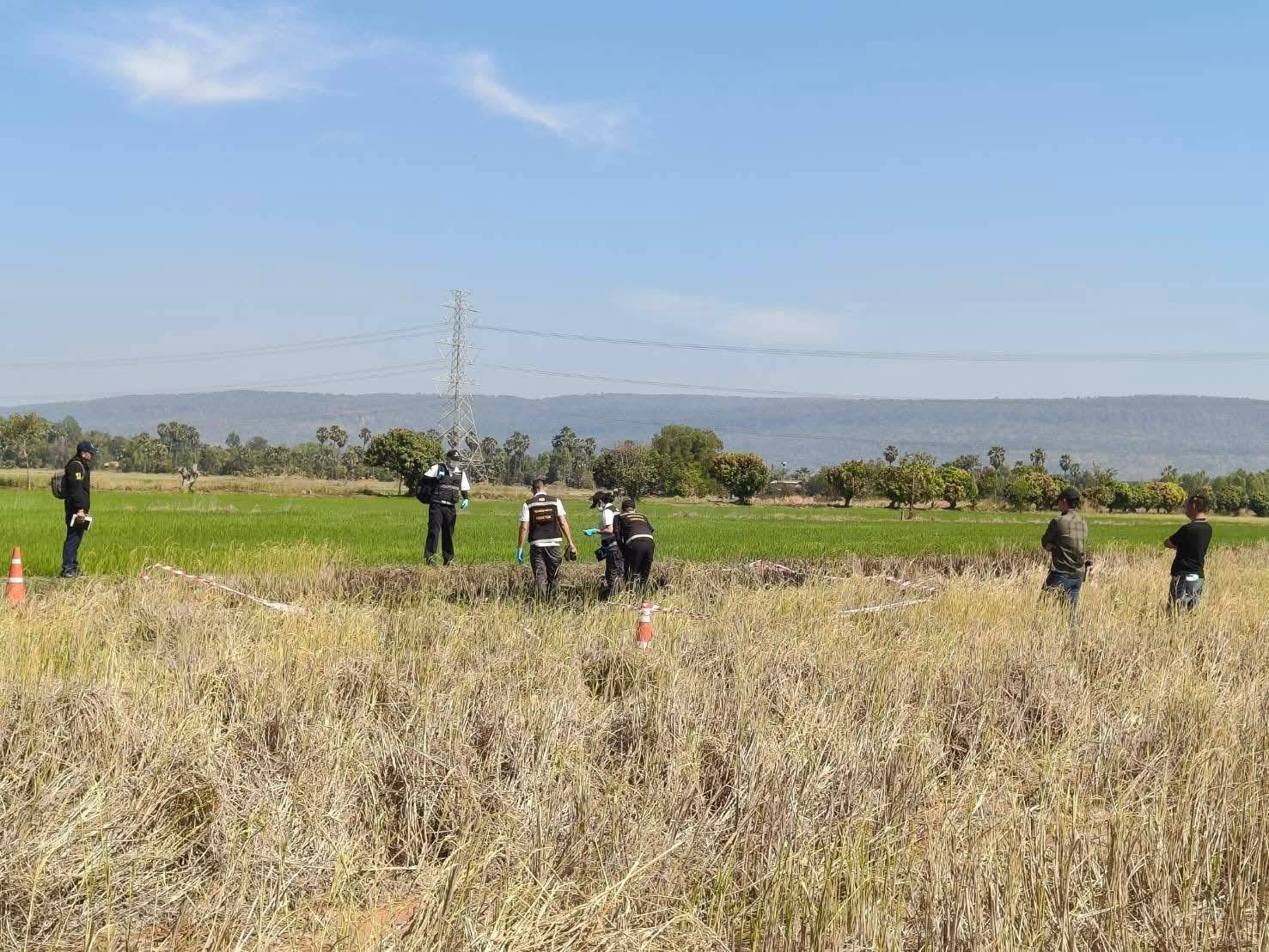 ที่เกิดเหตุ พบร่างผู้เสียชีวิตชาย 1 ราย ลักษณะเสียชีวิตมาแล้วหลายวัน สภาพนอนหงายอยู่กลางทุ่งนา ทราบชื่อต่อมาคือ นายสมชาย อายุ 52 ปี ใกล้เคียงพบเป็นรถจักรยานยนต์ ไม่ทราบรุ่น-ยี่ห้อ สภาพถูกไฟไหม้เสียหายทั้งคัน