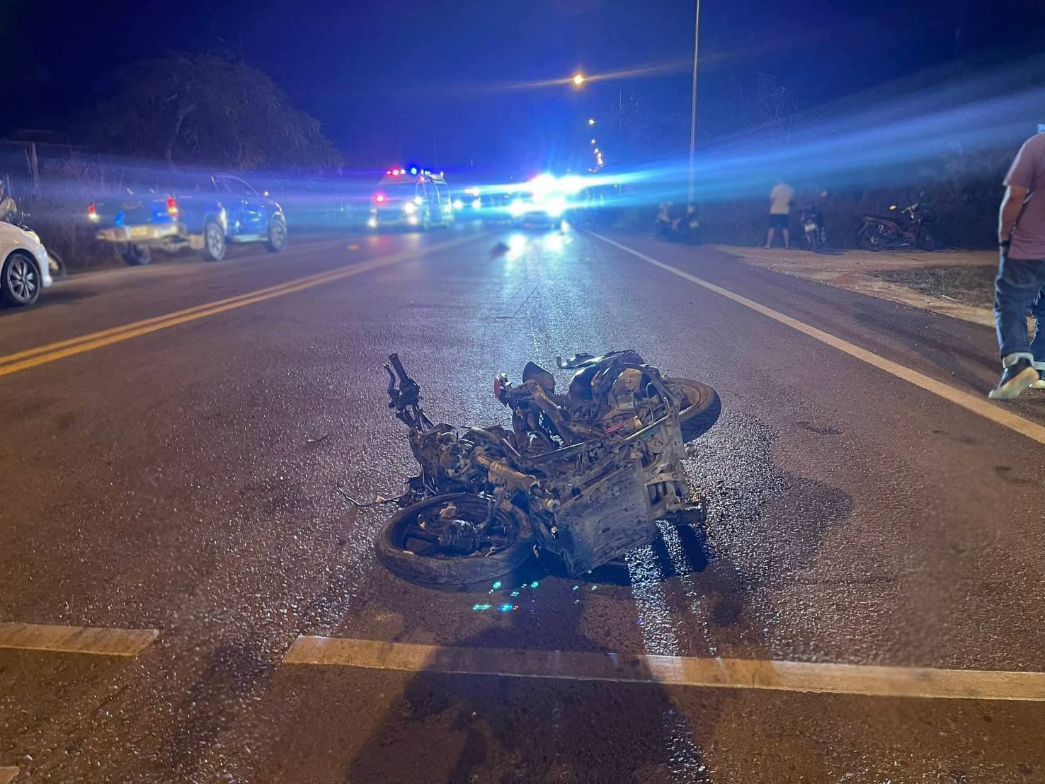 อุบัติเหตุรถอเนกประสงค์ ชนกับรถจักรยานยนต์ มีผู้เสียชีวิต กลางถนนเส้นทางบ้านดอนปอแดง จ.อุดรธานี