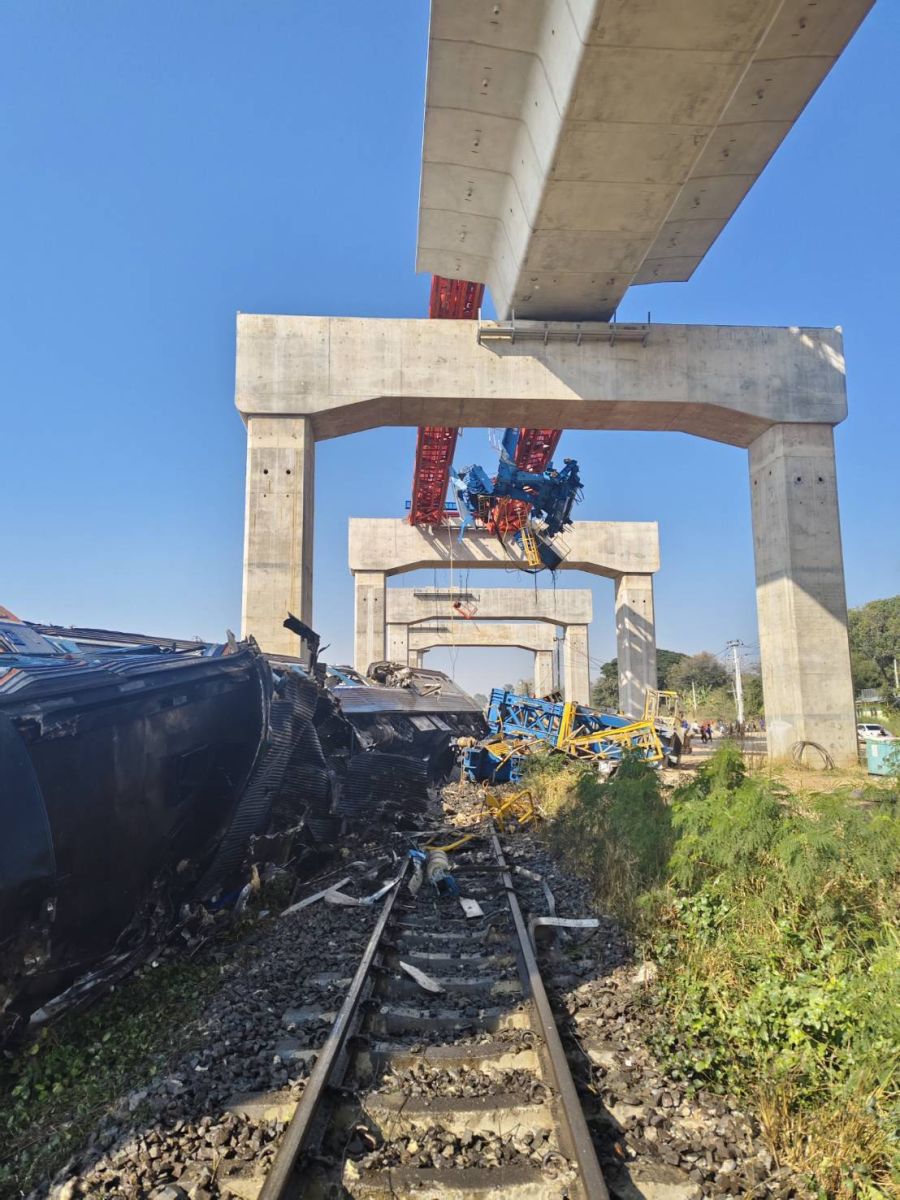 การดำเนินการ ณ ขณะนี้ รถเครน 3-4 คัน ถึงที่เกิดเหตุแล้ว อยู่ระหว่างดำเนินการยกขบวนรถไฟออกจากพื้นที่กีดขวาง ซึ่งขณะนี้ยังไม่สามารถเปิดเส้นทางได้