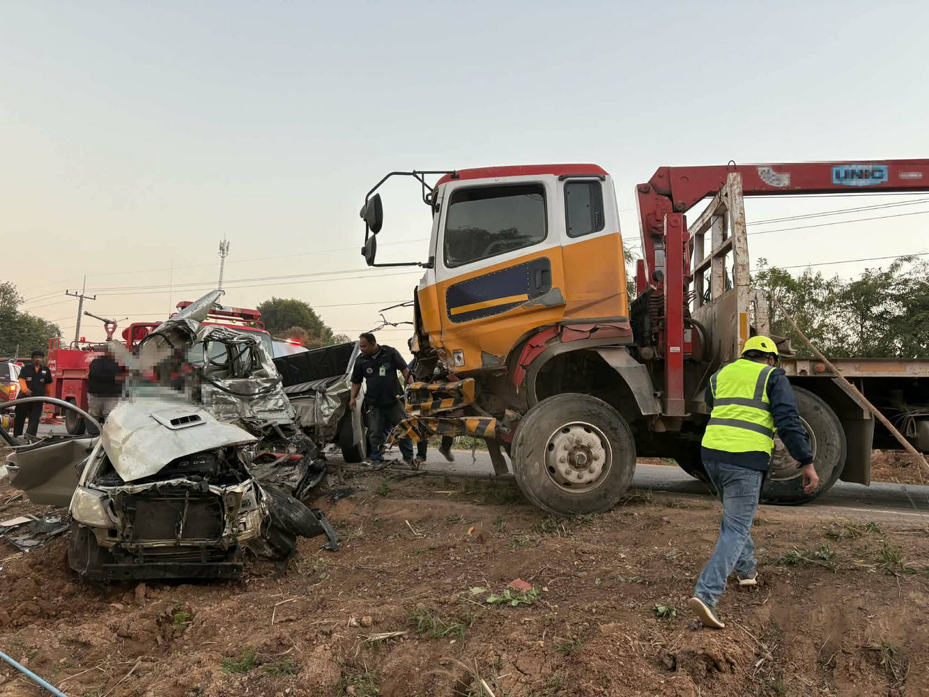 รถกระบะชนกับรถบรรทุก กลางถนนสายชัยภูมิ - หนองบัวแดง มีผู้เสียชีวิตติดค้างในซากรถ จ.ชัยภูมิ