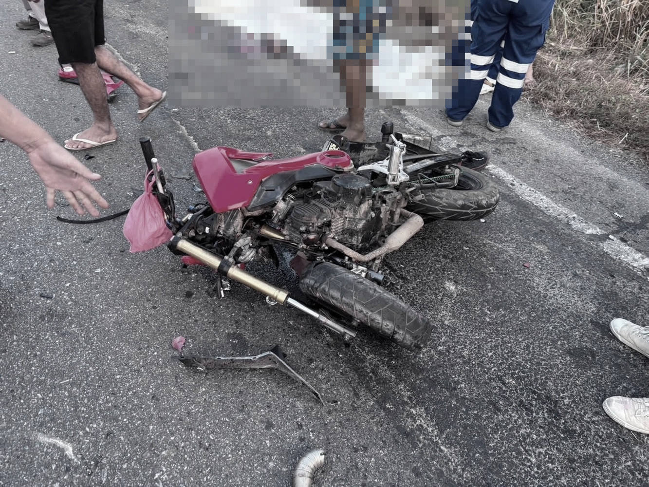 รถจักรยานยนต์ 2 คันชนกันอย่างจังกลางถนน มีผู้เสียชีวิต 2 ราย จ.กาญจนบุรี