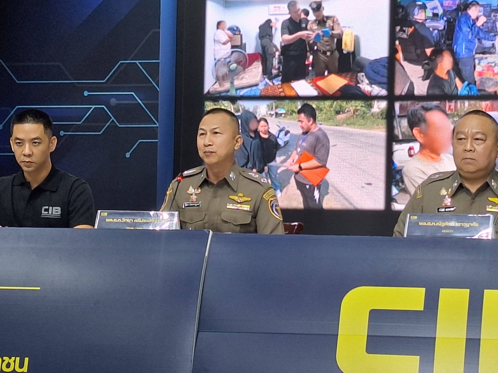กองบัญชาการตำรวจสอบสวนกลาง (CIB) โดย กองบังคับการปราบปรามการค้ามนุษย์ แถลงข่าว ร่วมกันจับกุมผู้ต้องหา3 ราย ดังนี้ ในข้อหา“เป็นอั้งยี่ ฯ, ร่วมกันกรรโชก โดยข่มขืนใจผู้อื่น และร่วมกันฟอกเงิน” หลังเข้าตรวจค้นสถานที่ 3 แห่ง คือ บ้านหลังหนึ่ง ในพื้นที่ จังหวัดกาญจนบุรี และ จังหวัดสิงห์บุรี พร้อมตรวจยึดของกลาง ดังนี้