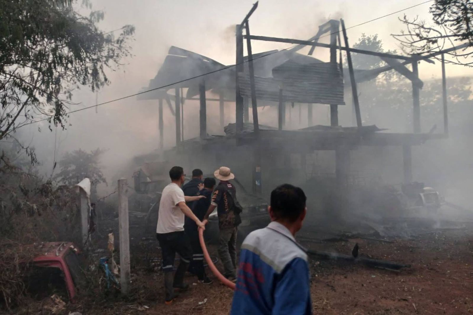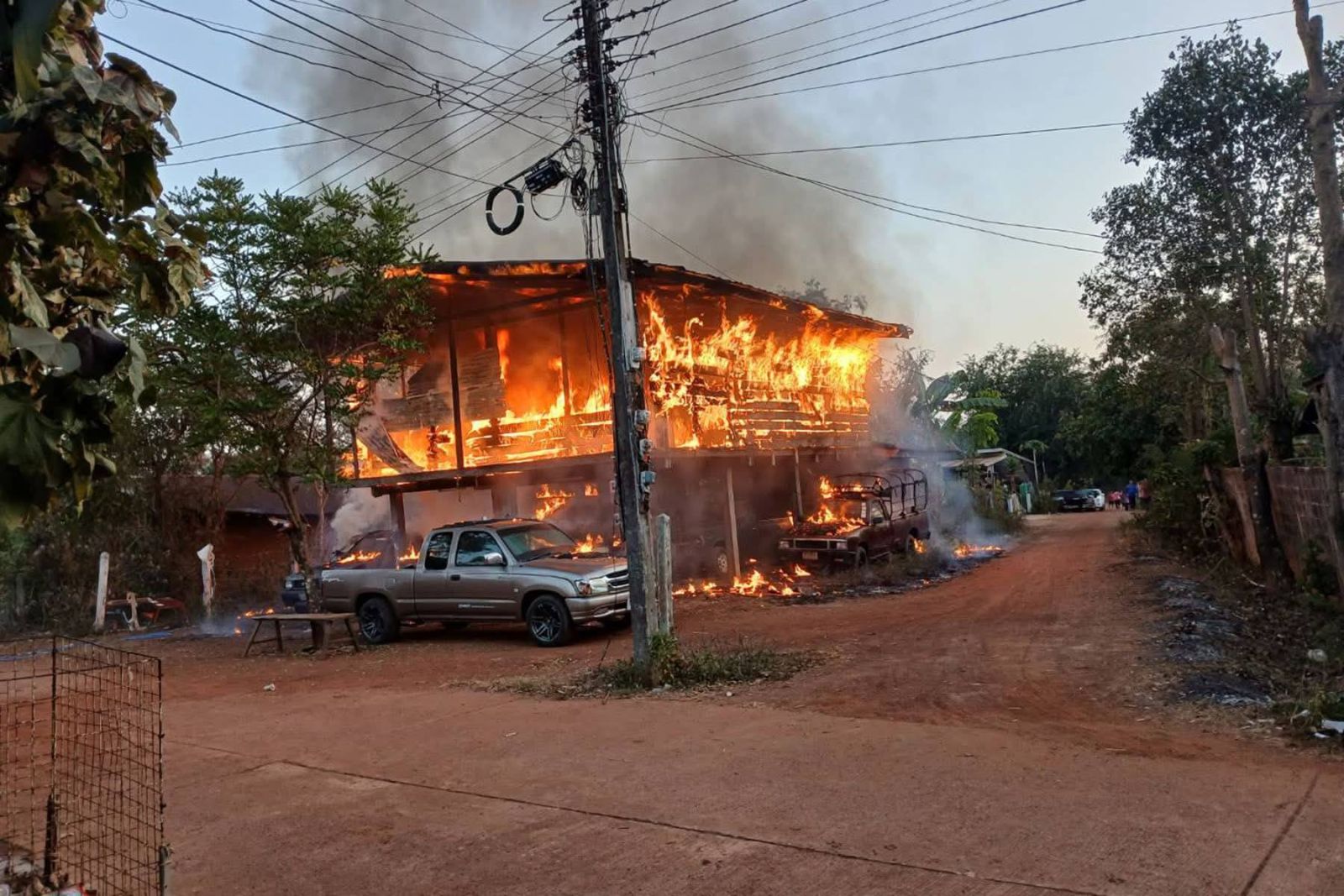 เหตุเพลิงไหมบ้านของคนขายรถมือสอง เสียหายวอดทั้งหลัง ลุกลามรถยนต์เสียหาย 8 คัน คาดว่าความเสียหายกว่า 2 ล้านบาท จ.หนองคาย