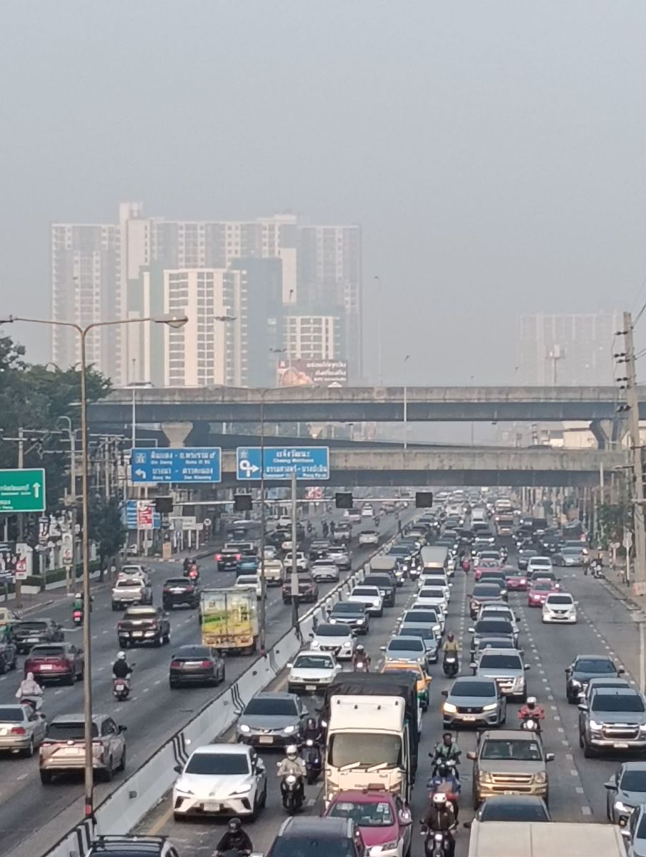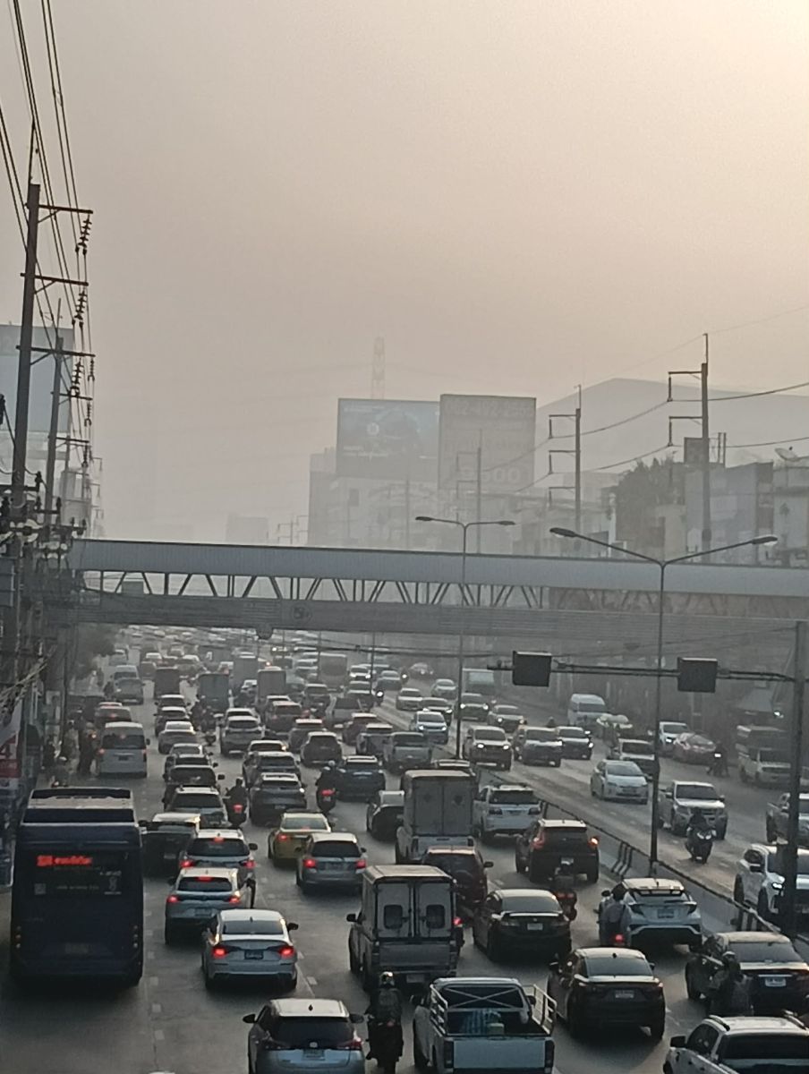 08.00 น. รถก็ติด ฝุ่นก็หนา! ถนนงามวงศ์วาน ขาเข้า มุ่งหน้าแยกพงษ์เพชร รถติดมาก ท้ายแถวสะสมอยู่ที่แยกแคราย ส่วนฝั่งกลับกัน ชะลอตัวหน้าเดอะมอลล์ งามวงศ์วานเล็กน้อย #รายงานจราจร #รถติด #ฝุ่น #ฝุ่นPM25 #FM91