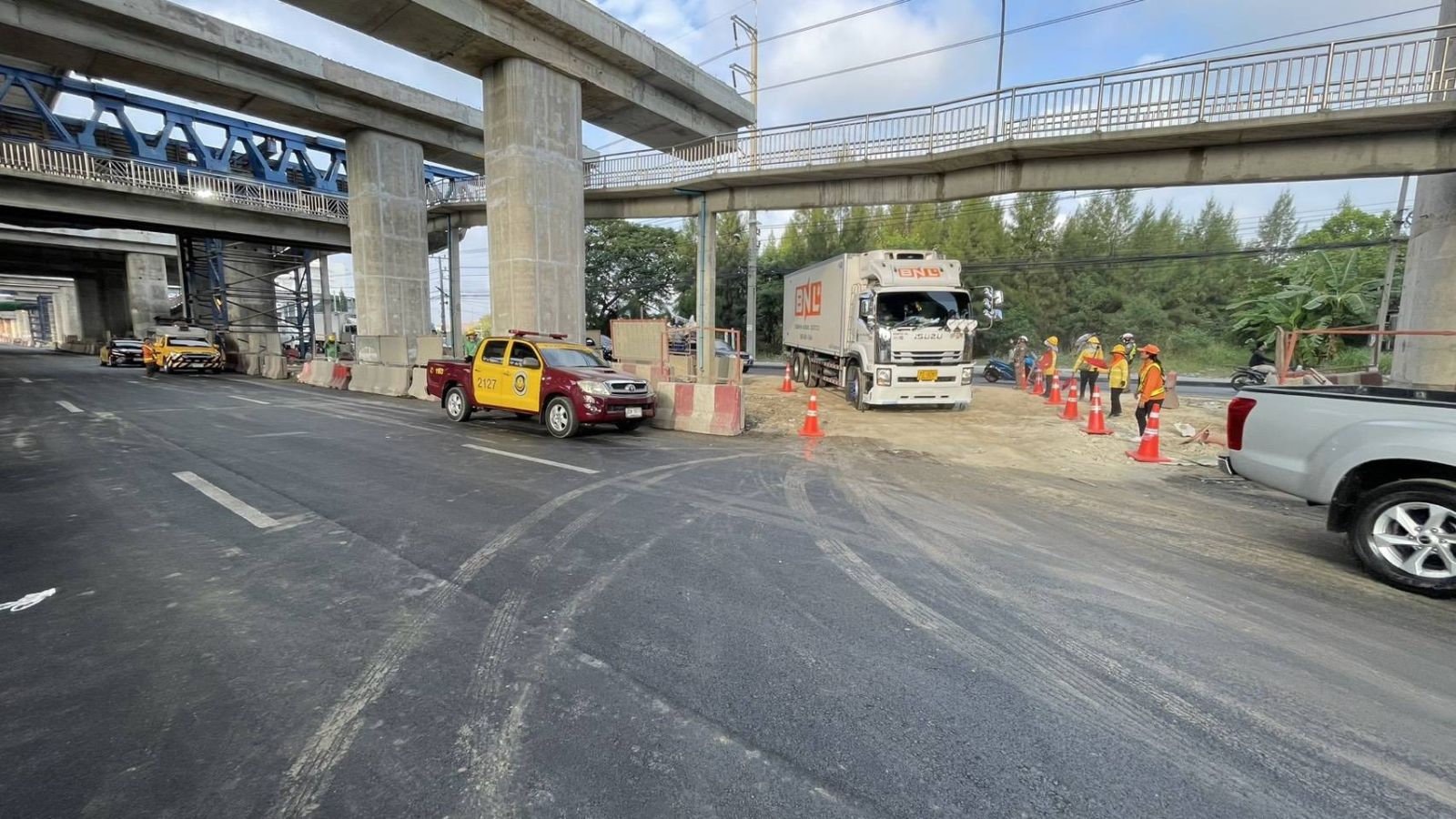 โดยล่าสุด ถ.พระราม 2 ขาออก มีการปิดการจราจรบริเวณ กม.28+000 ทุกคันเบี่ยงออกนอก เปิด กม.32 ใช้ทางได้ตามปกติ ส่วนขาเข้า ปิด กม.32+500 ทุกคันเบี่ยงออกนอก และเปิด กม.29+800 บังคับเบี่ยงเข้าใน