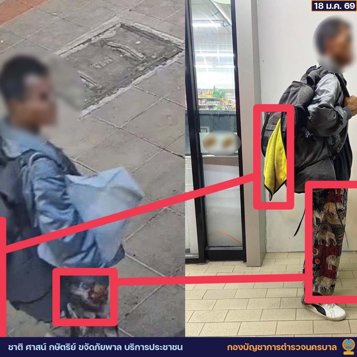 ฝ่ายสืบสวนได้ไปตรวจที่เกิดเหตุพร้อมทำการตรวจสอบตำหนิรูปพรรณคนร้ายจากพยานแวดล้อม กล้องวงจรปิด ในที่เกิดเหตุพบว่ามีการกระทำความผิดช่วยโอกาสลักทรัพย์นักท่องเที่ยวชาวจีนไปจริง จึงสืบสวนติดตามจากพยานหลักฐานที่เกิดเหตุโดยผู้ต้องหาหลบหนี ฝ่ายสืบสวนจึงได้ดำเนินการติดตามตนพบผู้กระทำความผิด จากการสอบถาม ผู้ต้องหาเป็นคนเร่ร่อน ไม่มีที่อยู่เป็นหลักแหล่ง เดินผ่านมาเจอจังหวะสมโอกาสที่เห็นทรัพย์สินและมีเจ้าของอยู่บริเวณใกล้เคียงเลยก่อเหตุวิ่งราวทรัพย์ หลบหนีไป