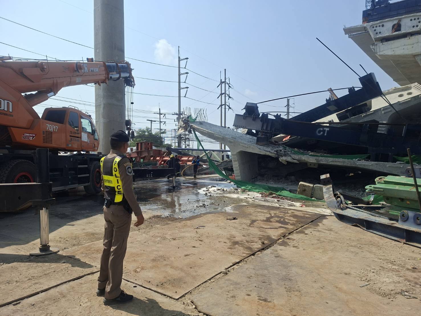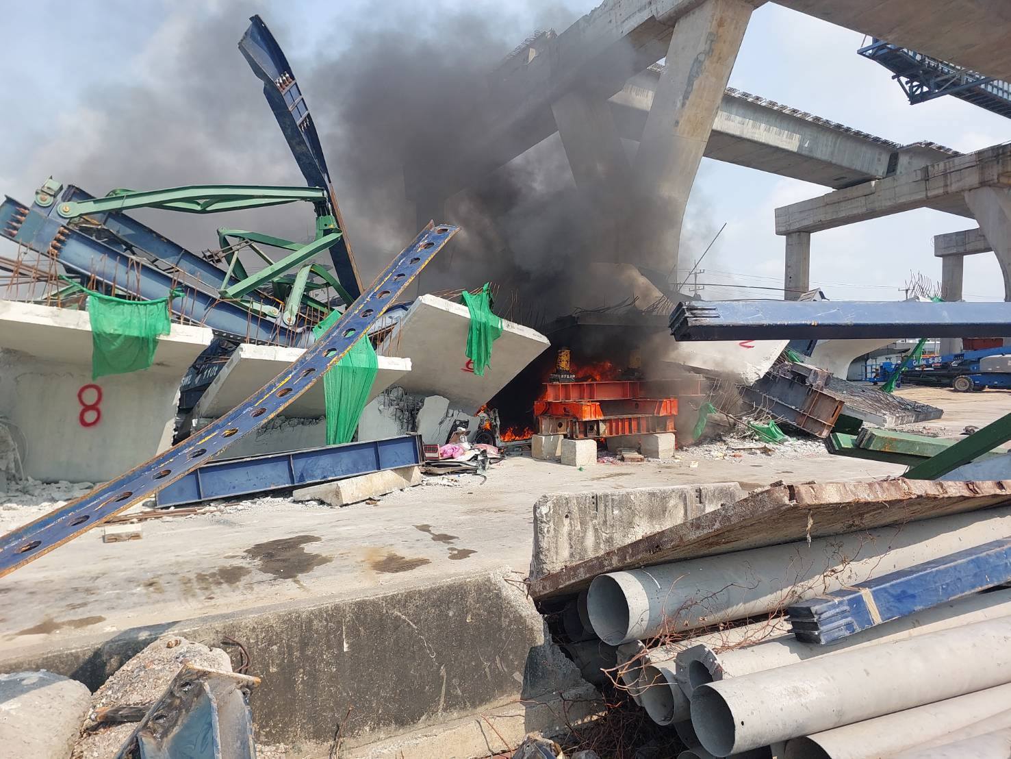 ขณะนี้ไฟดับหมดแล้วและกำลังทำความสะอาดขจัดคราบน้ำมันให้เรียบร้อย