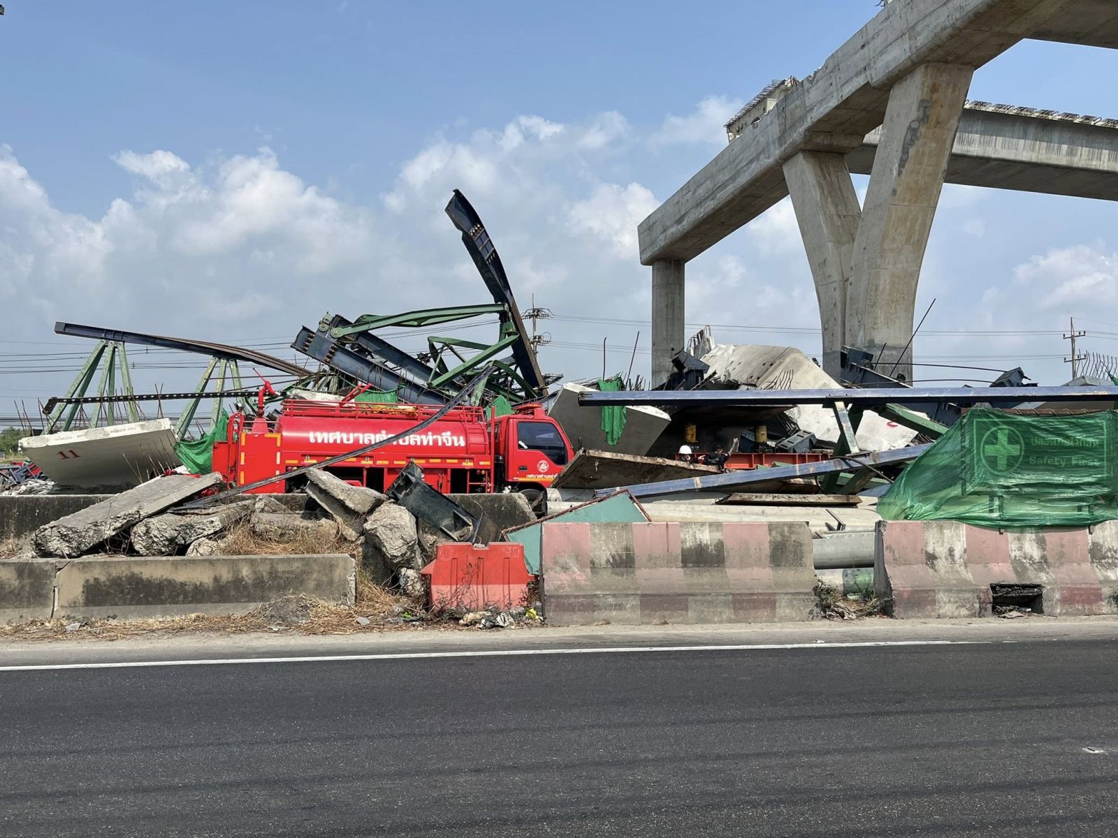 โดยรถดับเพลิงของเทศบาลตำบลท่าจีน จำนวน 1 คันและรถโฟมเคมีขนาดใหญ่ จำนวน 1 คัน ใช้เวลาประมาณ 10 นาที เพลิงจึงดับลง ที่เกิดเหตุไม่มีผู้ได้รับบาดเจ็บ