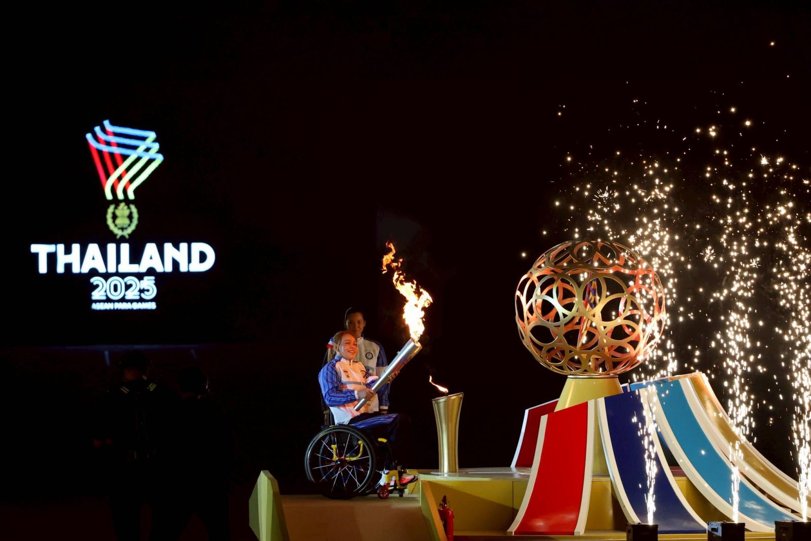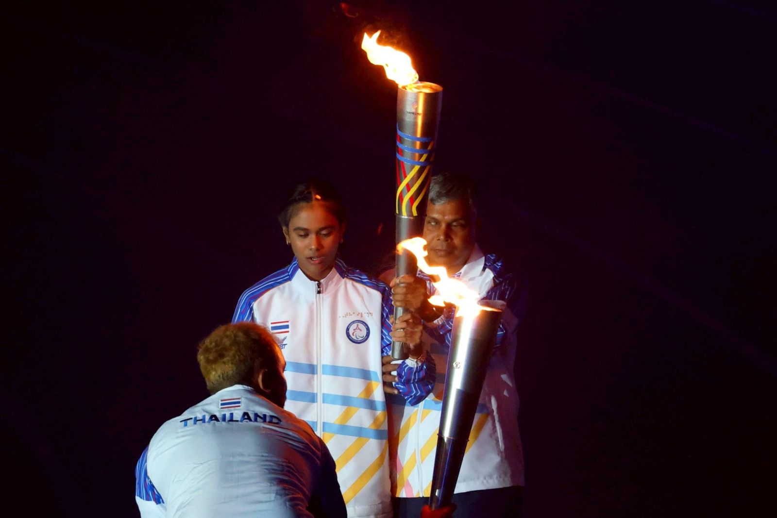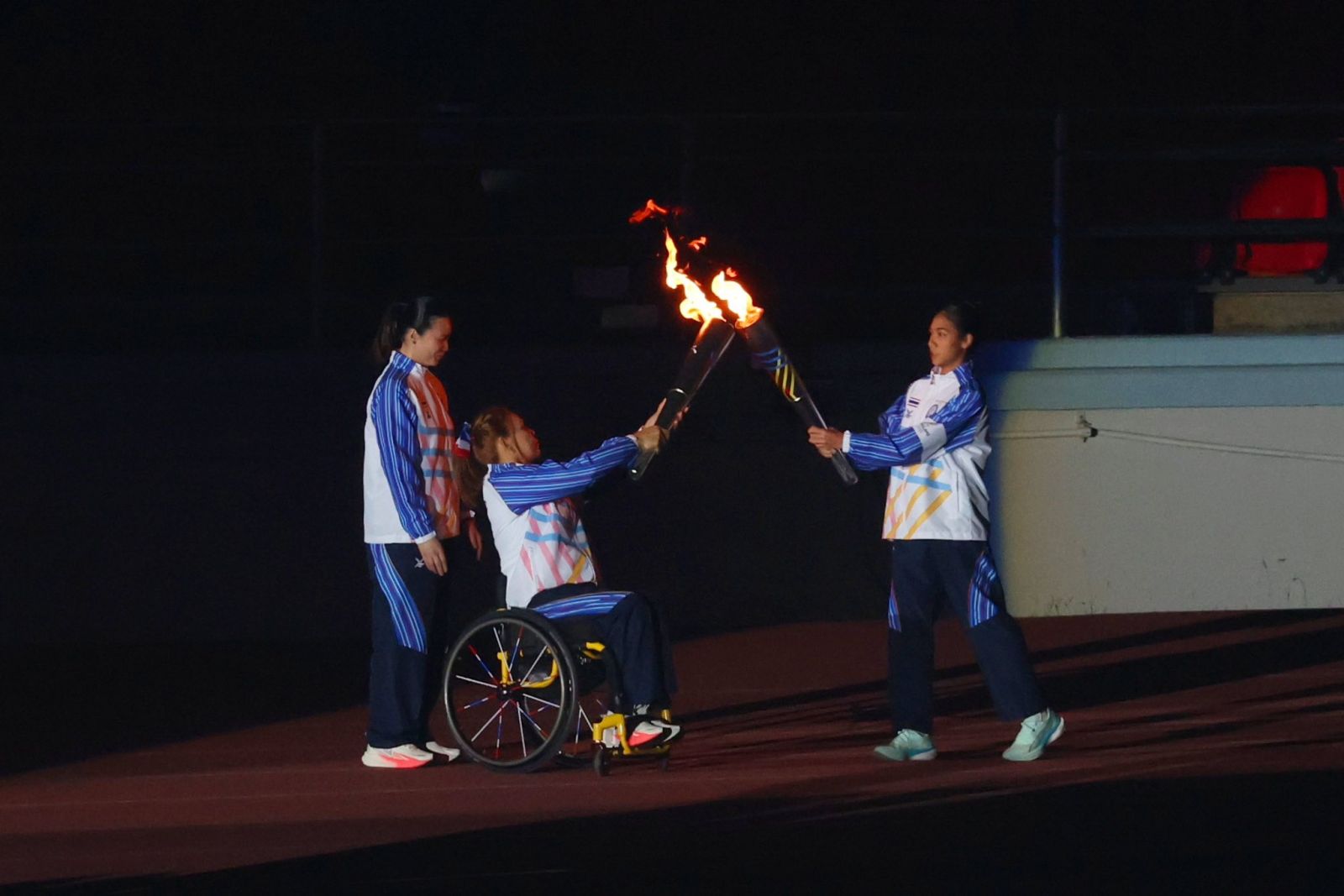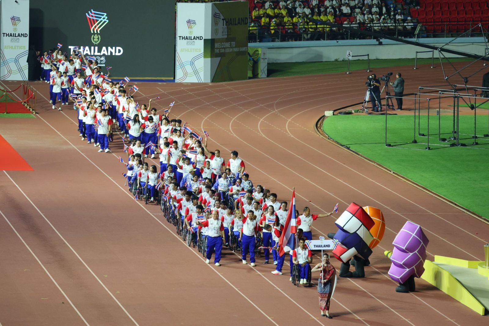 จากนั้นเป็นขบวนพาเหรดนักกีฬา ซึ่งทัพนักกีฬาไทยเข้าสู่สนาม โดยมีประวัติ วะโฮรัมย์ นักกีฬาวีลแชร์เรซซิ่ง เจ้าของ 7 เหรียญทองพาราลิมปิกเกมส์ ทำหน้าที่ถือธงไตรรงค์นำขบวน ในขณะที่ ขบวนวิ่งคบเพลิง นำโดย บีม ชัยวัฒน์ รัตนะ, พนม ลักษณะพริ้ม และ ลูกเกด อรวรรณ ไกรสิงห์ ก่อนส่งต่อให้ แววสายสุนีย์ จ๊ะนะ นักกีฬาวีลแชร์ฟันดาบ เจ้าของ 5 เหรียญทองพาราลิมปิกเกมส์ ทำหน้าที่วิ่งคบเพลิงคนสุดท้ายและจุดไฟในกระถาง เปิดการแข่งขันอย่างเป็นทางการ