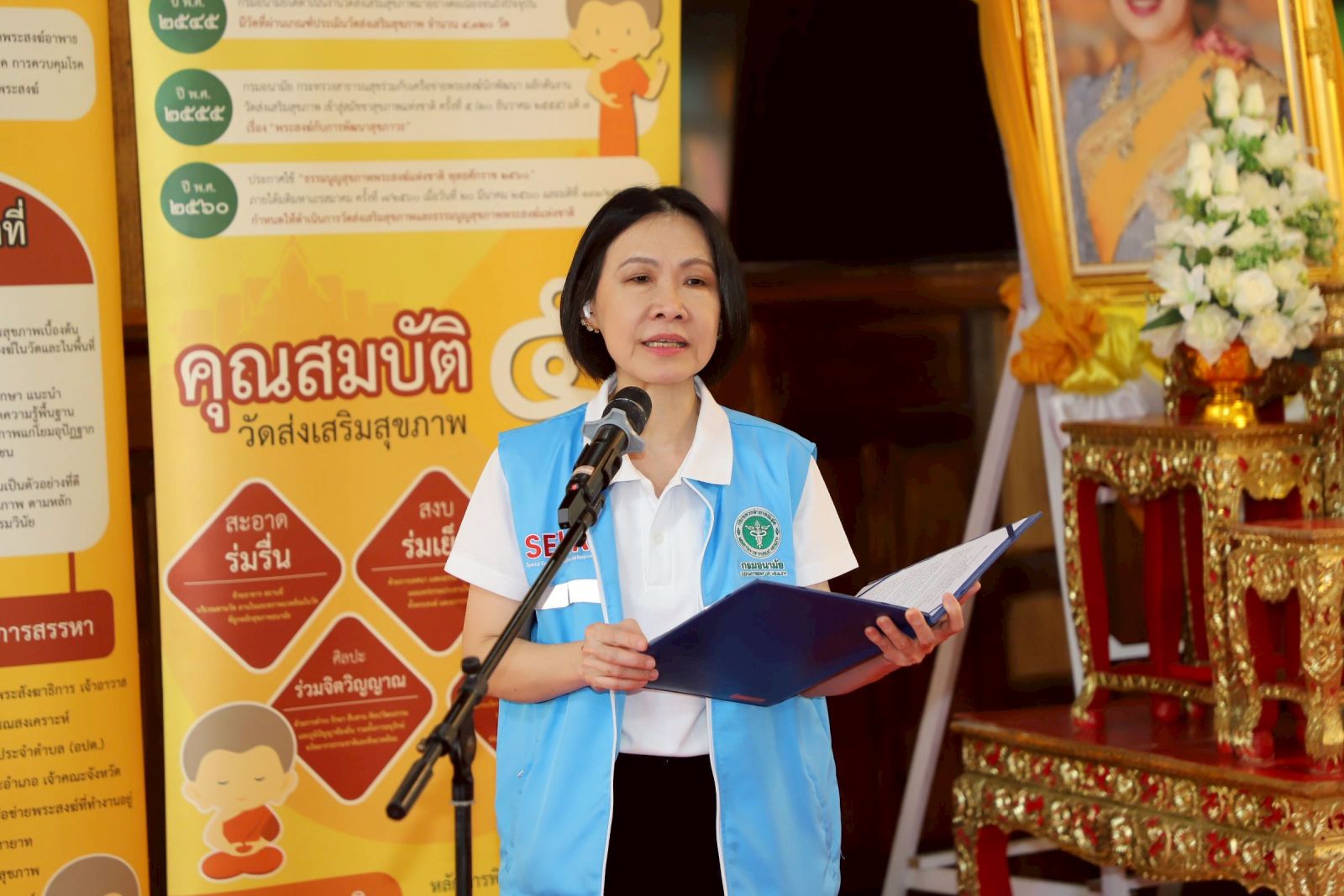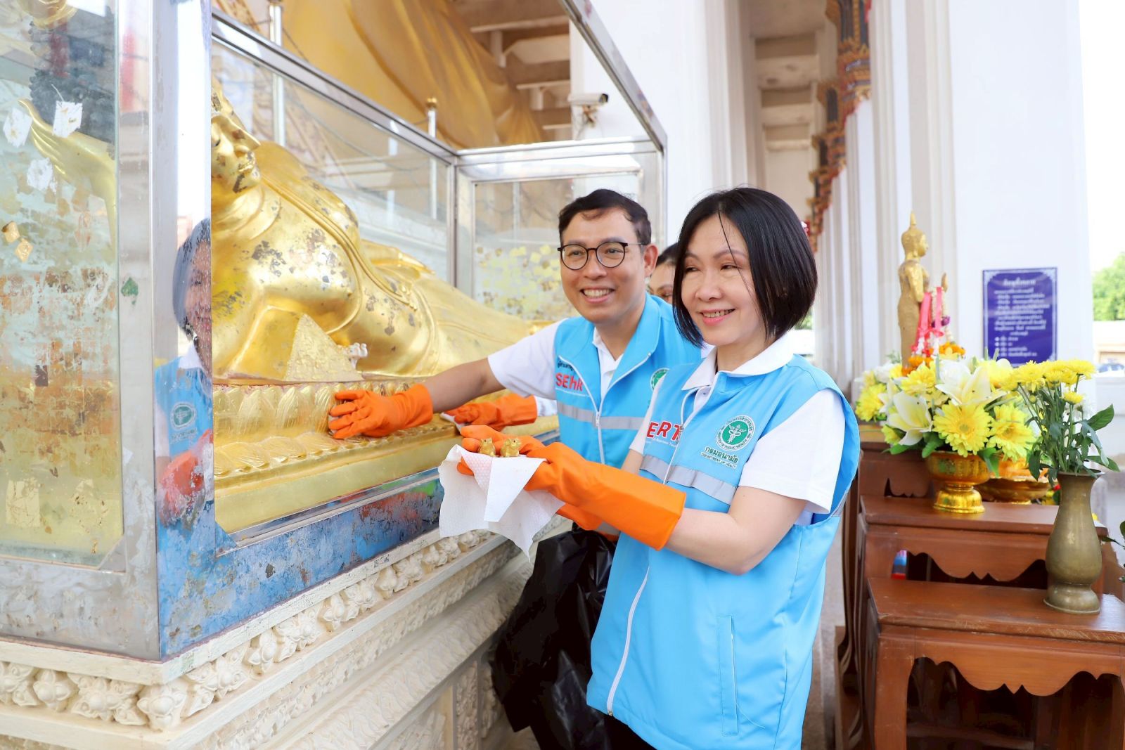 “ทั้งนี้ กรมอนามัยตระหนักดีว่าความสูญเสียจากมหาอุทกภัยครั้งนี้ ไม่เพียงส่งผลกระทบต่อร่างกายและทรัพย์สินเท่านั้น แต่ยังส่งผลต่อสภาพจิตใจ และคุณภาพชีวิตของประชาชนเป็นอย่างมาก กรมอนามัยให้ความสำคัญกับการฟื้นฟูหลังภัยพิบัติในมิติเชิงสุขภาพอย่างรอบด้าน มุ่งเน้นการจัดการด้านสุขาภิบาลและอนามัยสิ่งแวดล้อม รวมทั้งการป้องกันโรคอย่างเป็นระบบ เพื่อฟื้นฟูศาสนสถานทั้งวัด โบสถ์ มัสยิด ศริสตจักร อันเป็นศูนย์รวมจิตใจของชุมชน และสนามเด็กเล่น ที่เป็นแหล่งบ่มเพาะพัฒนาการของเด็กๆ ให้เจริญเติบโตอย่างสมวัย กรมอนามัยจึงจัดกิจกรรมทำความสะอาด “ลด ล้างโรค” ที่วัดมหัตตมังคลาราม (วัดหาดใหญ่ใน) ซึ่งเป็นศาสนสถานสำคัญและเป็นศูนย์รวมจิตใจของประชาชนจังหวัดสงขลา ผ่านการประเมินรับรองตามหลัก 5 ร. คือ 1) ร. สะอาดร่ม 2) ร. สงบร่มเย็น 3) ร. สุขภาพร่วมสร้าง 4) ร. ศิลปะร่วมจิต และ 5) ร. ชาวประชาร่วมพัฒนา รวมทั้ง การคัดกรองสุขภาพโดยโรงพยาบาลหาดใหญ่ และมอบเกียรติบัตรวัดส่งเสริมสุขภาพ พร้อมชุดตรวจสุขภาพ Health Station”อธิบดีกรมอนามัย กล่าว