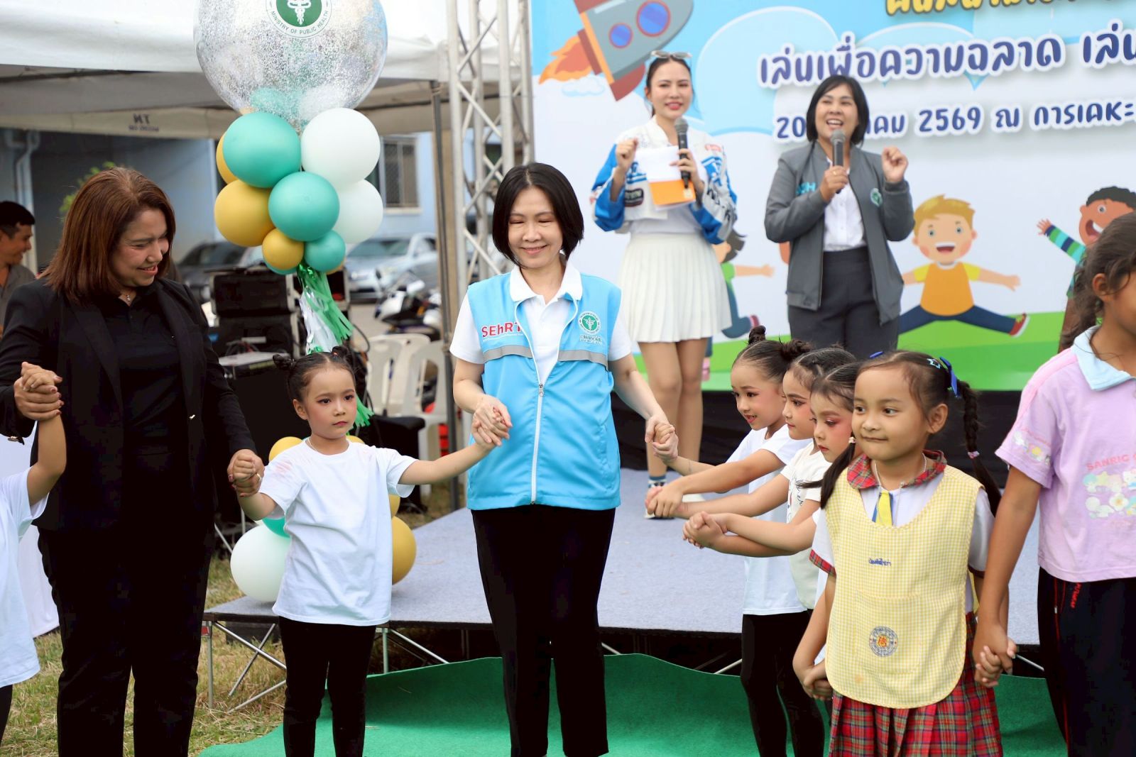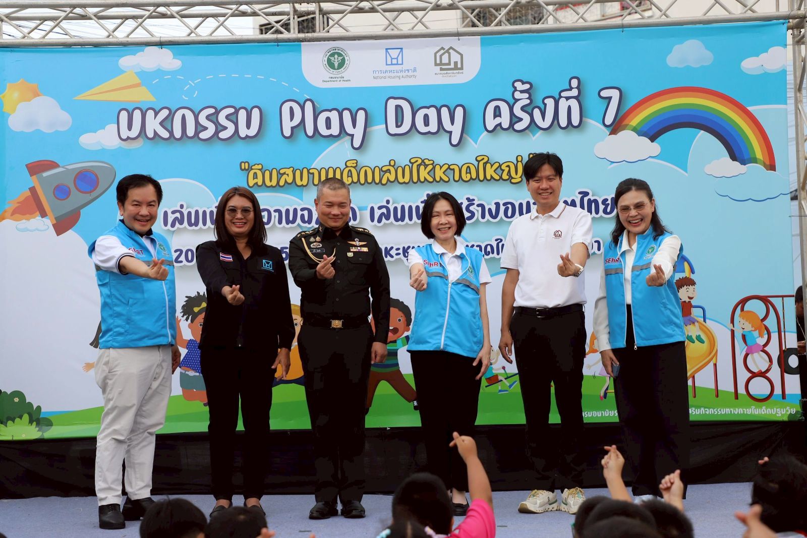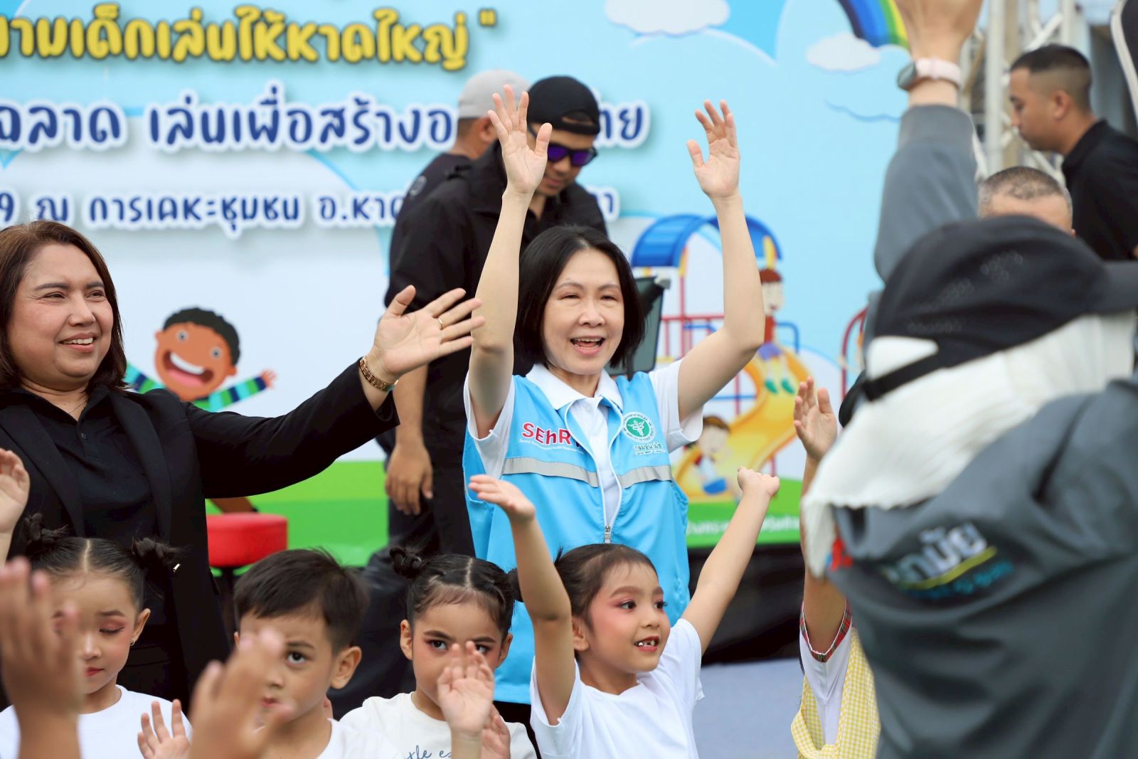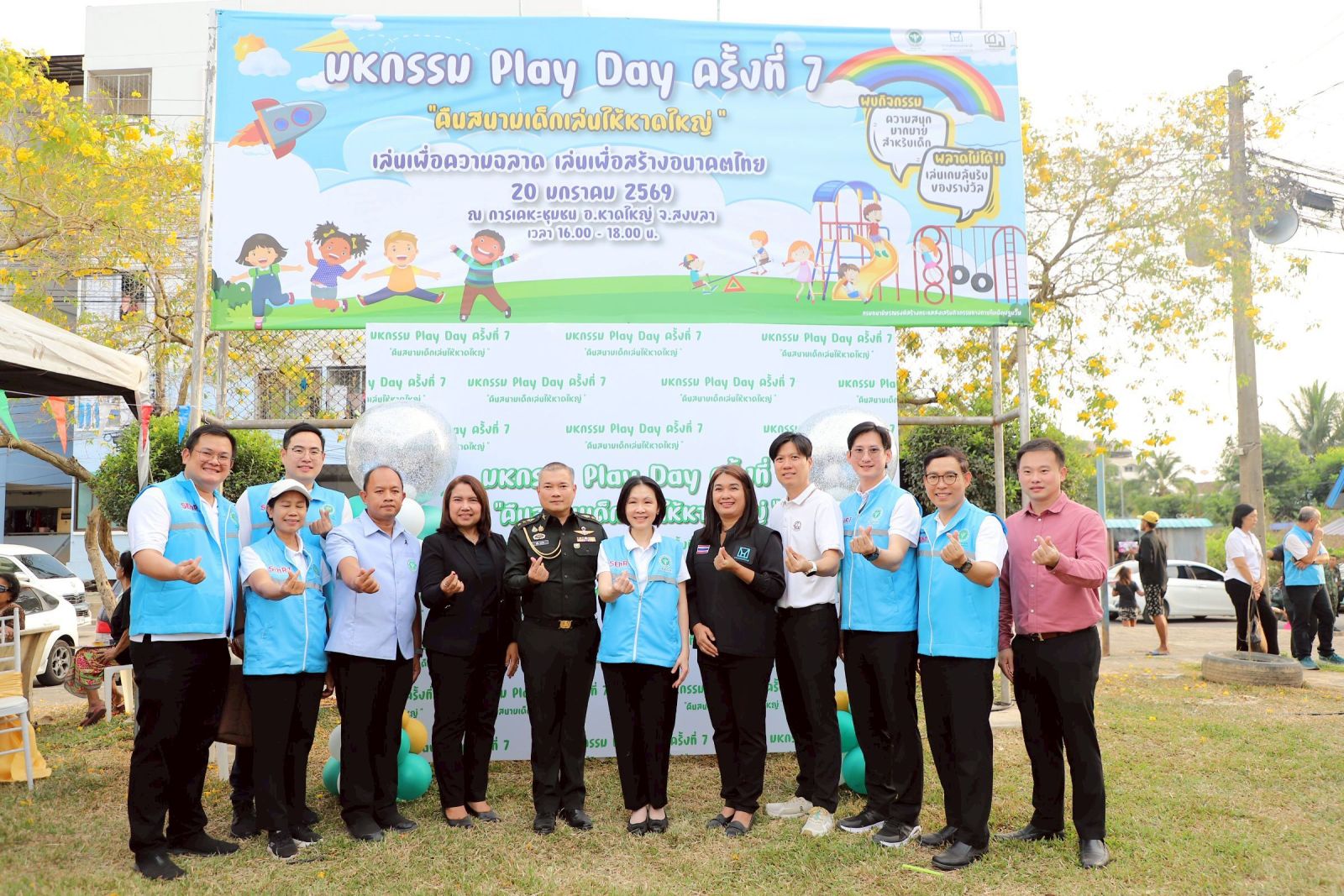 นายแพทย์ปกรณ์ ตุงคะเสรีรักษ์ รองอธิบดีกรมอนามัย กล่าวว่า นอกจากศาสนสถานที่เป็นศูนย์รวมจิตใจของประชาชนแล้ว “สนามเด็กเล่น” ก็สำคัญไม่แพ้กัน เพราะ “การเล่น” เป็นรากฐานของพัฒนาการเด็ก เป็นกระบวนการเรียนรู้ตามธรรมชาติที่ช่วยเสริมสร้างทักษะชีวิต ความคิดสร้างสรรค์ ความสัมพันธ์ในครอบครัวและชุมชน เป็นกลไกสำคัญของการส่งเสริมสุขภาพและพัฒนาการเด็กปฐมวัย ทั้งด้านร่างกาย จิตใจ อารมณ์ สังคม และเป็นจุดเริ่มต้นของสุขภาพที่ดีในระยะยาว กรมอนามัยจึงได้เดินหน้า “คืนสนามเด็กเล่นให้หาดใหญ่” คืนพื้นที่ปลอดภัยและสร้างสรรค์ให้กับเด็กและชุมชน เพื่อส่งเสริมกิจกรรมทางกายในเด็กปฐมวัยผ่านการเล่นอย่างอิสระ สร้างสภาพแวดล้อมที่เอื้อต่อพัฒนาการเด็ก ควบคู่ไปกับการฟื้นฟูพลังใจของเด็กและครอบครัวในชุมชนหลังผ่านพ้นสถานการณ์น้ำท่วม