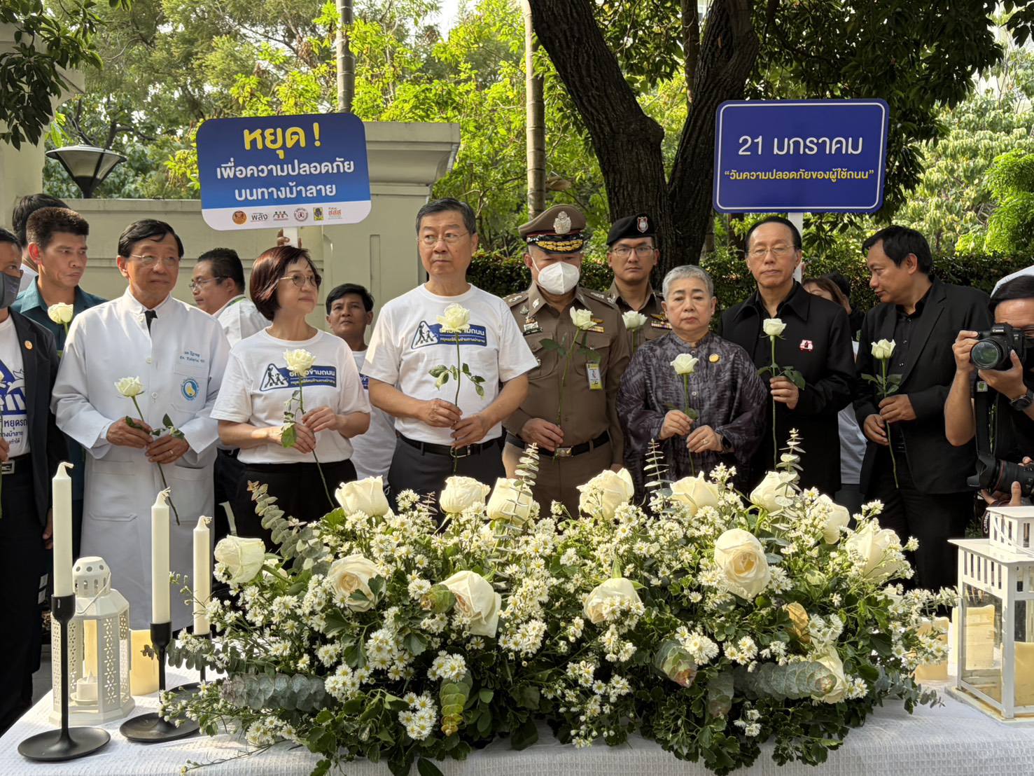 วันที่ ( 21 มกราคม 2569) ณ ลานด้านหน้าโรงพยาบาลสถาบันโรคไตภูมิราชนครินทร์ ถนนพญาไท เขตราชเทวี กรุงเทพฯ มูลนิธิเมาไม่ขับ สำนักงานกองทุนสนับสนุนการสร้างเสริมสุขภาพ (สสส.) สำนักงานตำรวจแห่งชาติ เครือข่ายพัฒนาคุณภาพชีวิต และภาคีเครือข่ายรณรงค์ลดอุบัติเหตุทางถนนภาครัฐ ภาคเอกชน ได้ร่วมกันจัดการแถลง ข่าวโครงการ “กี่คันได้ข้าม” เนื่องในวันความปลอดภัยผู้ใช้ถนน โดยมี นายสุรชัย เลี้ยงบุญเลิศชัย อดีตสมาชิกวุฒิสภา พล.ต.ต.ธวัช วงศ์สง่า รอง ผู้บัญชาการตำรวจนครบาล นายสิทธิพร สมคิดสรรพ์ ผู้อำนวยการสำนักการจราจรและขนส่ง กรุงเทพมหานคร คุณแม่รัชนี สุภวัตรจริยากุล มารดาแพทย์หญิงวราลัคน์ สุภวัตรจริยากุล (หมอกระต่าย) นายแพทย์ แท้จริง ศิริพานิช เลขาธิการมูลนิธิเมาไม่ขับ อาจารย์ภานุวัฒน์ สัจจะวิริยะกุล จาก Nudge Thailand เป็นผู้แถลงข่าว รายละเอียดของโครงการ