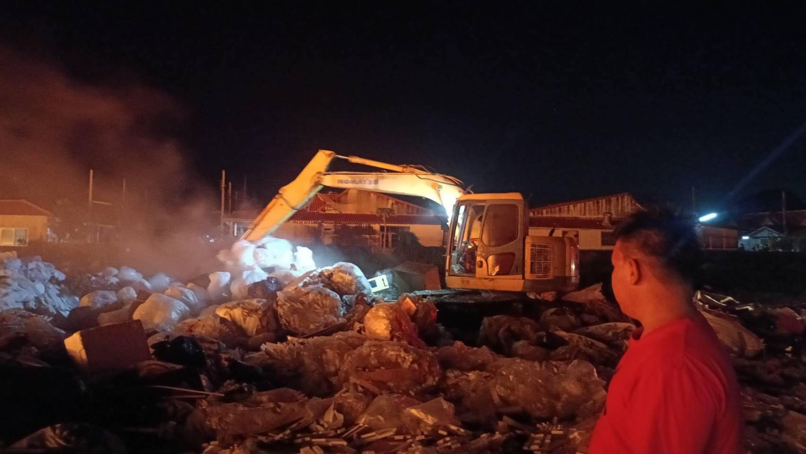 เวลา 20.33 น. เจ้าหน้าที่สถานีดับเพลิงและกู้ภัยหนองจอก ถึงที่เกิดเหตุ เป็นเพลิงลุกไหม้กองขยะขนาดใหญ่ ประมาณ 3 ไร่ ประสานเจ้าหน้าที่สำนักงานเขต เข้าร่วมดำเนินการ