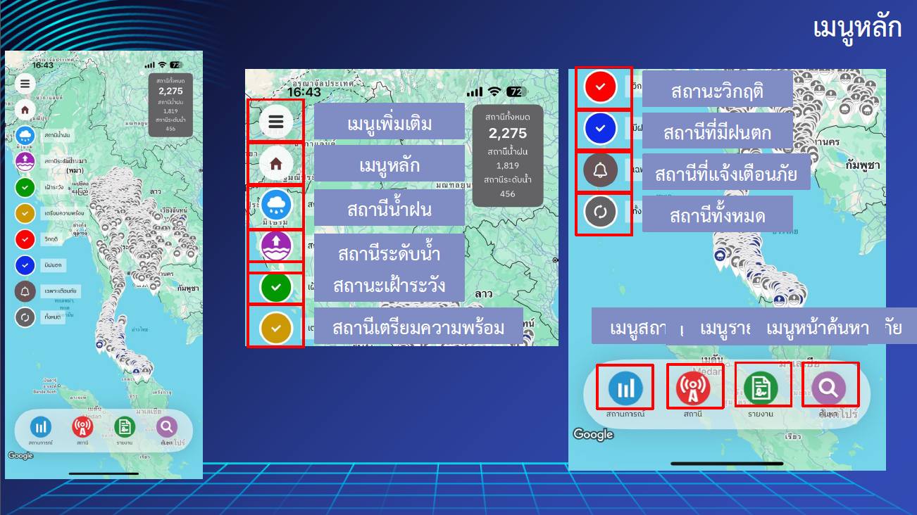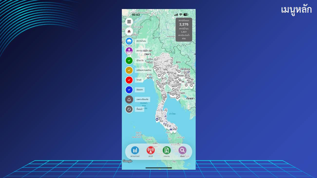 • เช็กสถานะได้ทันที: แสดงระดับน้ำและปริมาณฝนสะสมแบบเรียลไทม์ผ่านแผนที่