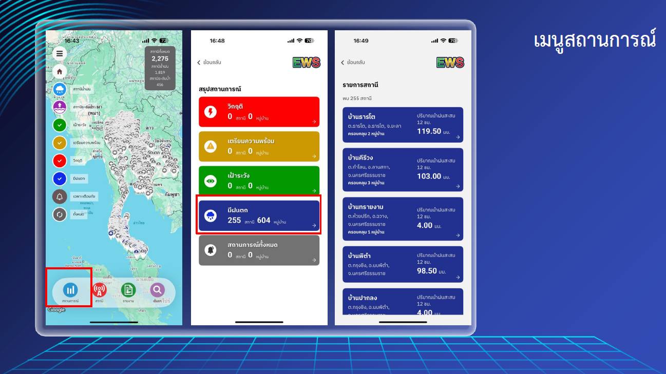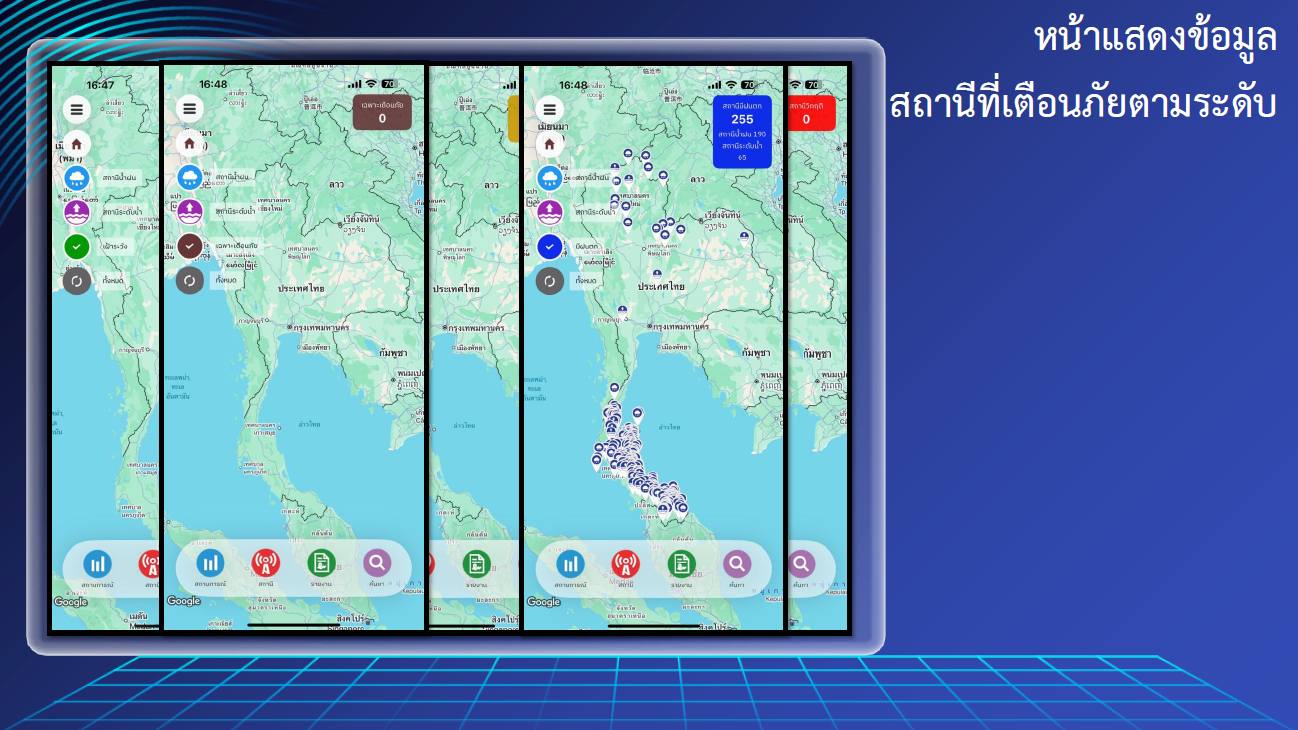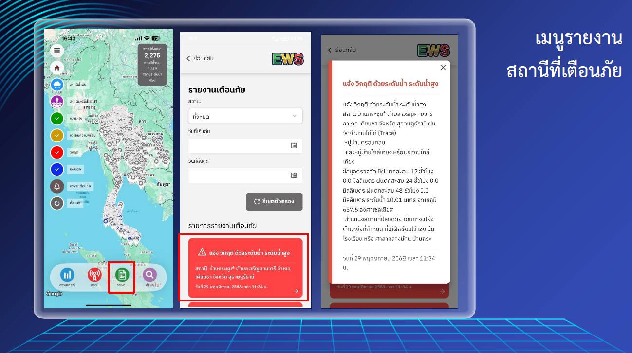 • ข้อมูลแม่นยำ ครอบคลุมสถานีเตือนภัยกว่า 2,275 สถานี พร้อมระบบรายงานประวัติการแจ้งเตือนย้อนหลัง