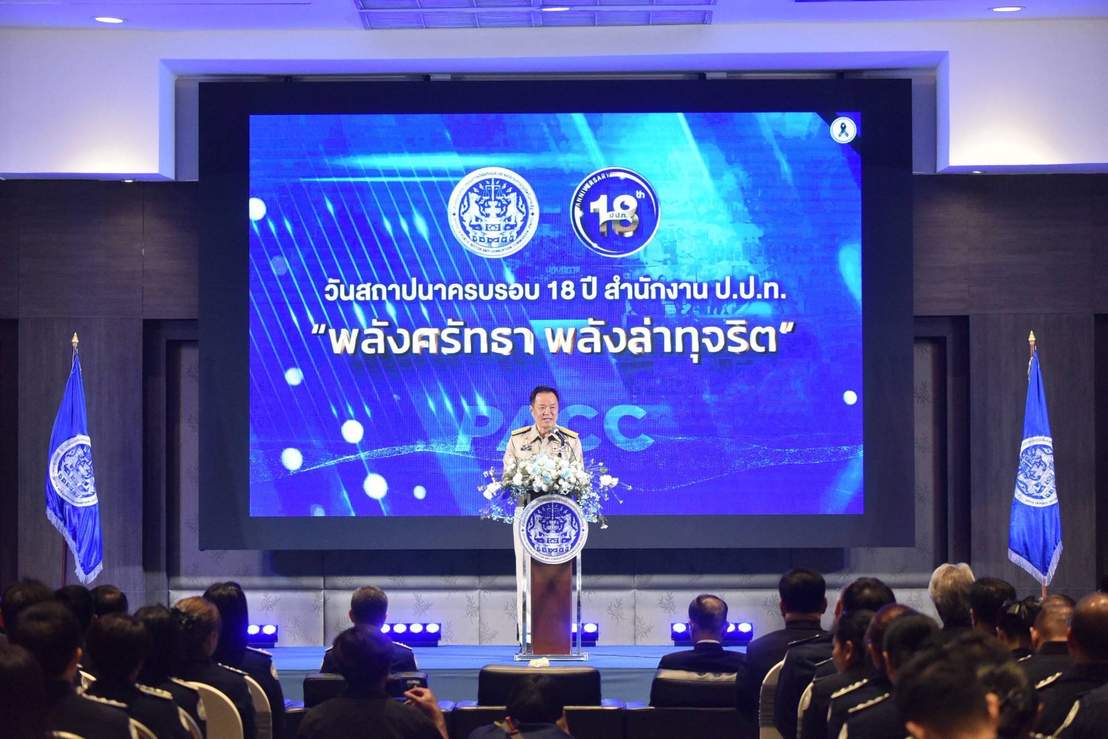 จากนั้นนายกรัฐมนตรีกล่าวแสดงความยินดีในวันคล้ายวันสถาปนาครบรอบ 18 ปี ของสำนักงานคณะกรรมการป้องกันและปราบปรามการทุจริตในภาครัฐ หรือ ป.ป.ท. ซึ่งเป็นหน่วยงานสำคัญ ที่มีส่วนทำให้ภาครัฐได้รับความเชื่อถือจากประชาชน วันนี้หากถามประชาชนชาวไทยถึงความกังวลมากที่สุด 3 เรื่อง เกินครึ่งจะต้องพูดถึงการทุจริตคอร์รัปชัน ซึ่งพวกเราทราบดีว่า การแก้ปัญหานี้ไม่เพียงจะต้องทำตลอดเวลาแต่ยังต้องมีพัฒนาการอย่างต่อเนื่อง ให้เท่าทันกับวิธีการใหม่ ๆ ของผู้ที่มีเจตนาทุจริต การดำเนินการของสำนักงาน ป.ป.ท. ซึ่งเป็นที่พึ่งของสังคม จึงจะต้องมีความชัดเจน เป็นระบบ และมุ่งบริหารจัดการคดีทุจริตในภาครัฐให้มีความเป็นปัจจุบัน ไม่มีคดีตกค้าง พร้อมทั้งบูรณาการความร่วมมือกับหน่วยงานที่เกี่ยวข้องอย่างมีประสิทธิภาพ เพื่อให้การดำเนินคดีเป็นไปอย่างรวดเร็ว เป็นธรรม โปร่งใส ไม่เลือกปฏิบัติและปราศจากการแทรกแซงโดยเด็ดขาด ซึ่งเป็นหลักการเดียวกับคำกล่าวที่ว่า “ปิดชื่อ ถือพฤติกรรม” โดยเฉพาะอย่างยิ่ง หากปรากฏว่า เจ้าพนักงานของรัฐ มีความเกี่ยวข้อง ก็ถือเป็นการกระทำความผิดทางวินัยร้ายแรง และต้องดำเนินการทางอาญาอย่างเด็ดขาด รวมถึงกรณีการนำกฎหมายหรืออำนาจหน้าที่ของรัฐ ไปใช้เพื่อประโยชน์ทางการเมือง ทั้งนี้ เพื่อยกระดับความเชื่อมั่นของประชาชน และนานาประเทศ