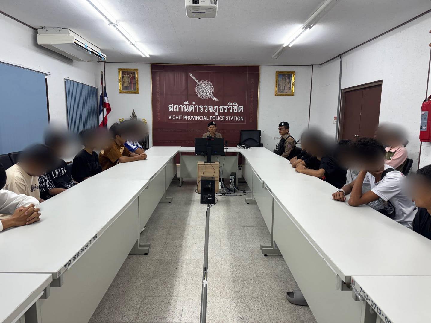 จากการตรวจสอบพบเยาวชนอายุต่ำกว่า 18 ปี จำนวน 13 รายนำตัวไปยัง สภ.วิชิต พร้อมกับดำเนินการเชิญผู้ปกครองฟังข้อชี้แจง ข้อกฎหมาย เพื่อดำเนินคดีตามพระราชบัญญัติคุ้มครองเด็ก พ.ศ.2546 มาตรา26(3) มาตรา 78 พร้อมจัดทำประวัติวัยรุ่นกลุ่มเสี่ยงผ่านระบบ Google Form และเชิญตัวผู้ปกครองรับตัวกลับที่พักตามขั้นตอนของกฎหมาย