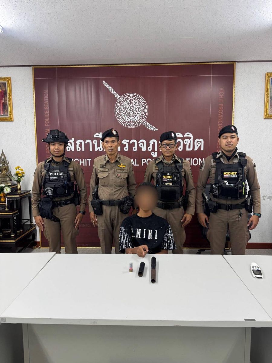 ขณะเดียวกันจากการตรวจค้นยังพบนายบอย (นามสมมติ) อายุ 15 ปี บ้านอยู่หมู่ 4 ต.ราไวย์ อ.เมืองภูเก็ตพร้อมอาวุธไทยประดิษฐ์ (ฉับโพง) ชนิดที่ใช้กับกระสุนลูกซองเบอร์ 12 พร้อมเครื่องกระสุนปืนลูกซองเบอร์ 12 จำนวน 1 นัดซุกซ่อนอยู่ในกระเป๋าสะพายสีเทา ควบคุมตัวนำส่งพนักงานสอบสวน สภ.วิชิตดำเนินคดีในข้อหาพกพาอาวุธปืนและเครื่องกระสุนไปในเมือง หมู่บ้านหรือทางสาธารณะ โดยไม่ได้รับอนุญาตหรือไม่มีเหตุอันควร และครอบครองอาวุธปืนเถื่อน