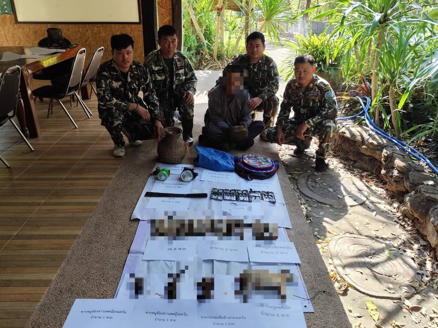 รวบพรานลักลอบล่าสัตว์ป่า ยึด 16 ซากของกลาง เร่งขยายผลจับเพื่อนร่วมขบวนการ คุมตัวส่ง สภ.คำชะอี แจ้ง 6 ข้อหาหนักฝ่าฝืน พ.ร.บ.สงวนและคุ้มครองสัตว์ป่า