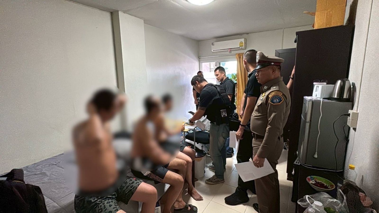 จากการตรวจค้นพบผู้ต้องหาชาวจีนพักอาศัยอยู่ทั้งหมด 3 คน ได้หลบหนีเข้ามาพักอาศัยอยู่ที่ห้องพักดังกล่าว โดยเข้ามาพักอาศัยตั้งแต่วันที่ 31 ธ.ค.68 จากการตรวจสอบการหนังสือเดินทาง และประวัติการเข้าออกประเทศของผู้ต้องหาทั้งสาม พบว่า ผู้ต้องหาทั้งสามคนอยู่ในราชอาณาจักรโดยการอนุญาตสิ้นสุด (Overstay) โดยอยู่เกินมากกว่า 360 วัน