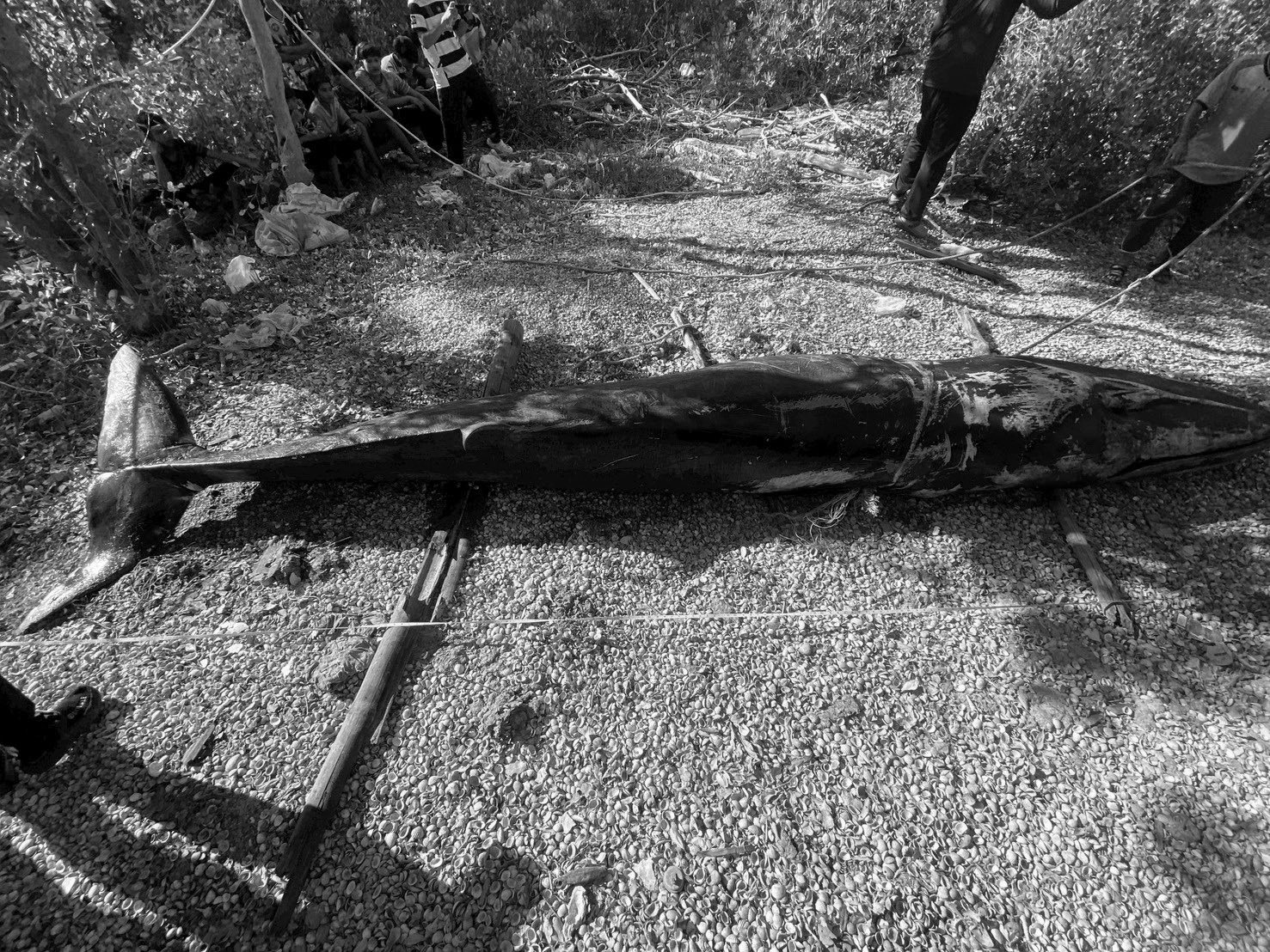 โดยคาดว่าสาเหตุโน้มนำเกิดจากการป่วยและพลัดหลงจากแม่ ทั้งนี้ เจ้าหน้าที่ได้ทำการเก็บตัวอย่างชิ้นเนื้อเพื่อนำไปวิเคราะห์ทางห้องปฏิบัติการ ตัวอย่างโครงกระดูกส่วนขากรรไกรล่าง ครีบอก กระดูกเชิงกรานและทำการจัดการซากโดยได้รับความอนุเคราะห์จากองค์การบริหารส่วนตำบลปูยู จังหวัดสตูลเพื่อใช้รถแมคโครในการขุดฝังกลบซากในพื้นที่