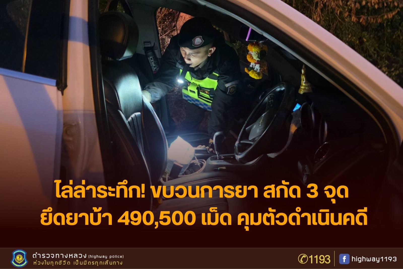 ตำรวจทางหลวงขอนแก่น ตั้งจุดสกัด 3 จุด บนถนนมิตรภาพในพื้นที่จังหวัดขอนแก่น สกัดรถต้องสงสัยขบวนการลำเลียงยาเสพติด จับผู้ต้องหาได้ 6 คน พร้อมตรวจยึดยาบ้าของกลางรวม 490,500 เม็ด และรถยนต์ที่ใช้ในการกระทำความผิด 4 คัน