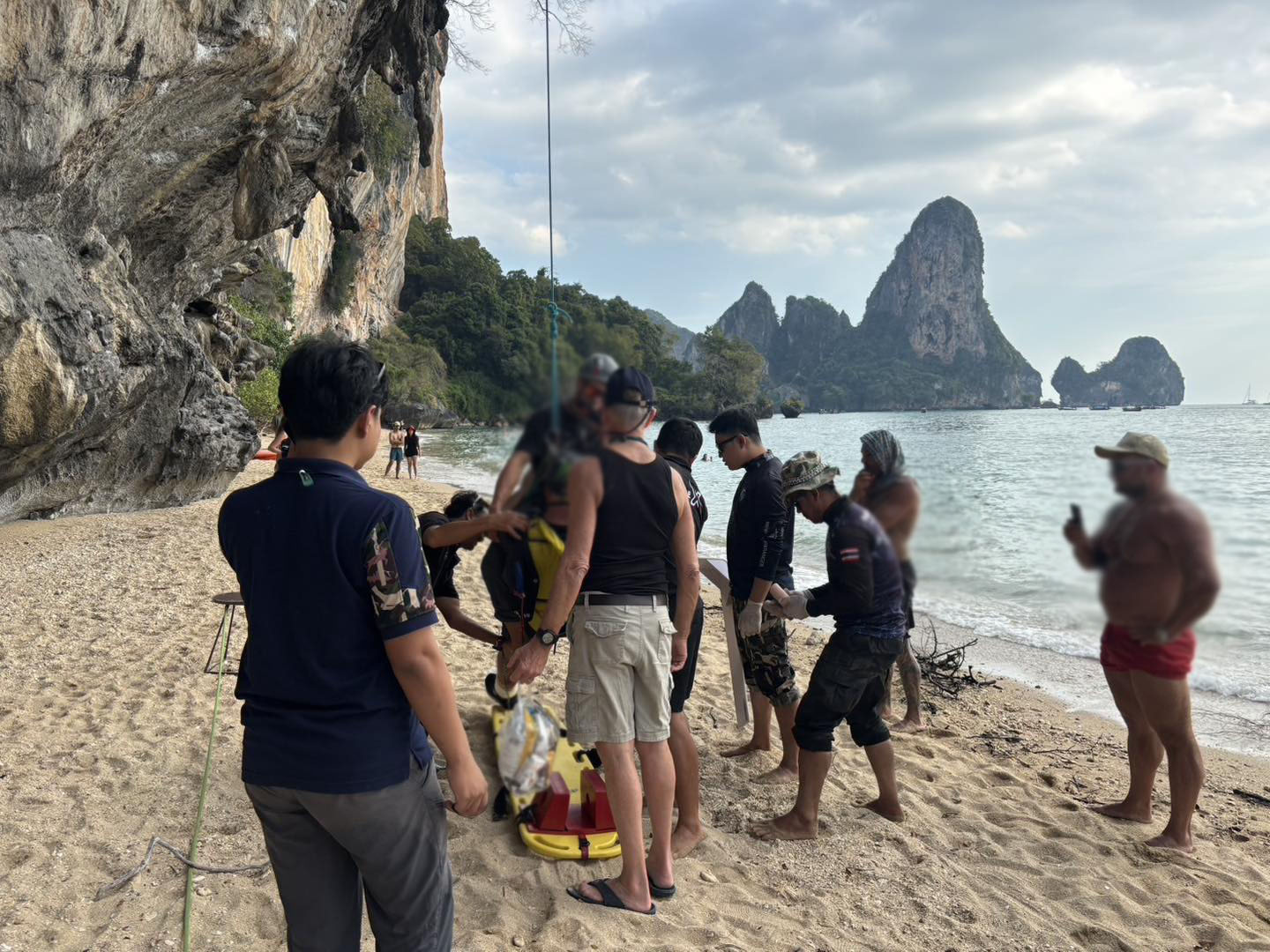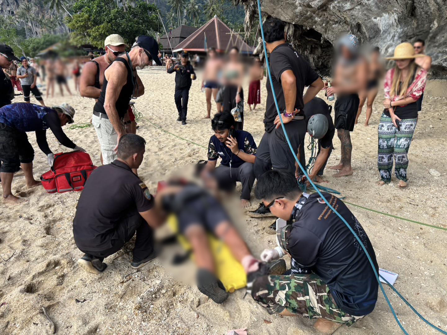จากการสอบถามทราบว่าเป็นนักท่องเที่ยวเพศชาย สัญชาติ British อายุ 52 ปี จึงได้ทำการปฐมพยาบาลเบื้องต้น และนำตัวส่งต่อการรักษาจากอ่าวไร่เลย์ โดยเรือตรวจการณ์อุทยานแห่งชาติฯ และส่งต่อด้วยรถกู้ชีพกู้ภัยอุทยานแห่งชาติฯ เพื่อนำส่งการรักษา ทีมแพทย์ ณ โรงพยาบาลวัฒนะแพทย์ต่อไป